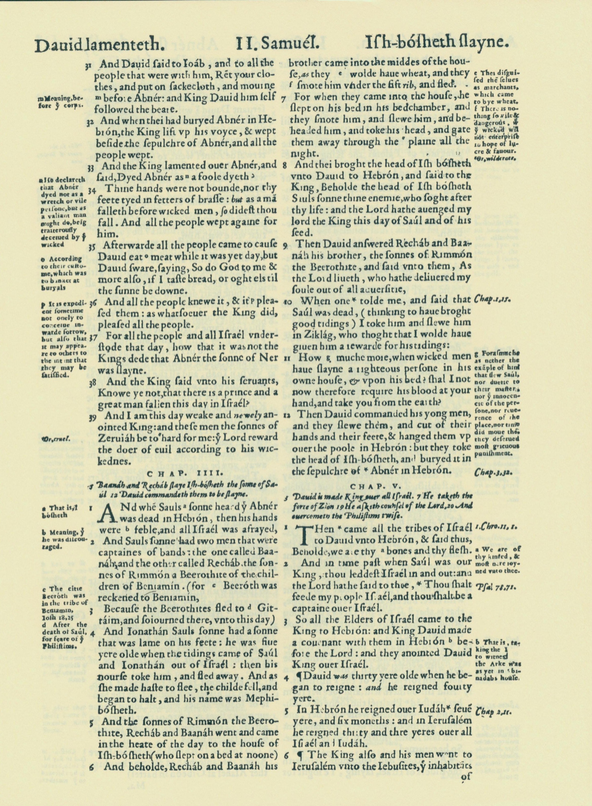 1560年THE BIBLE AND HOLY SCRIPTURES 撒母耳记下 3 章 31 节到 5 章 6 节