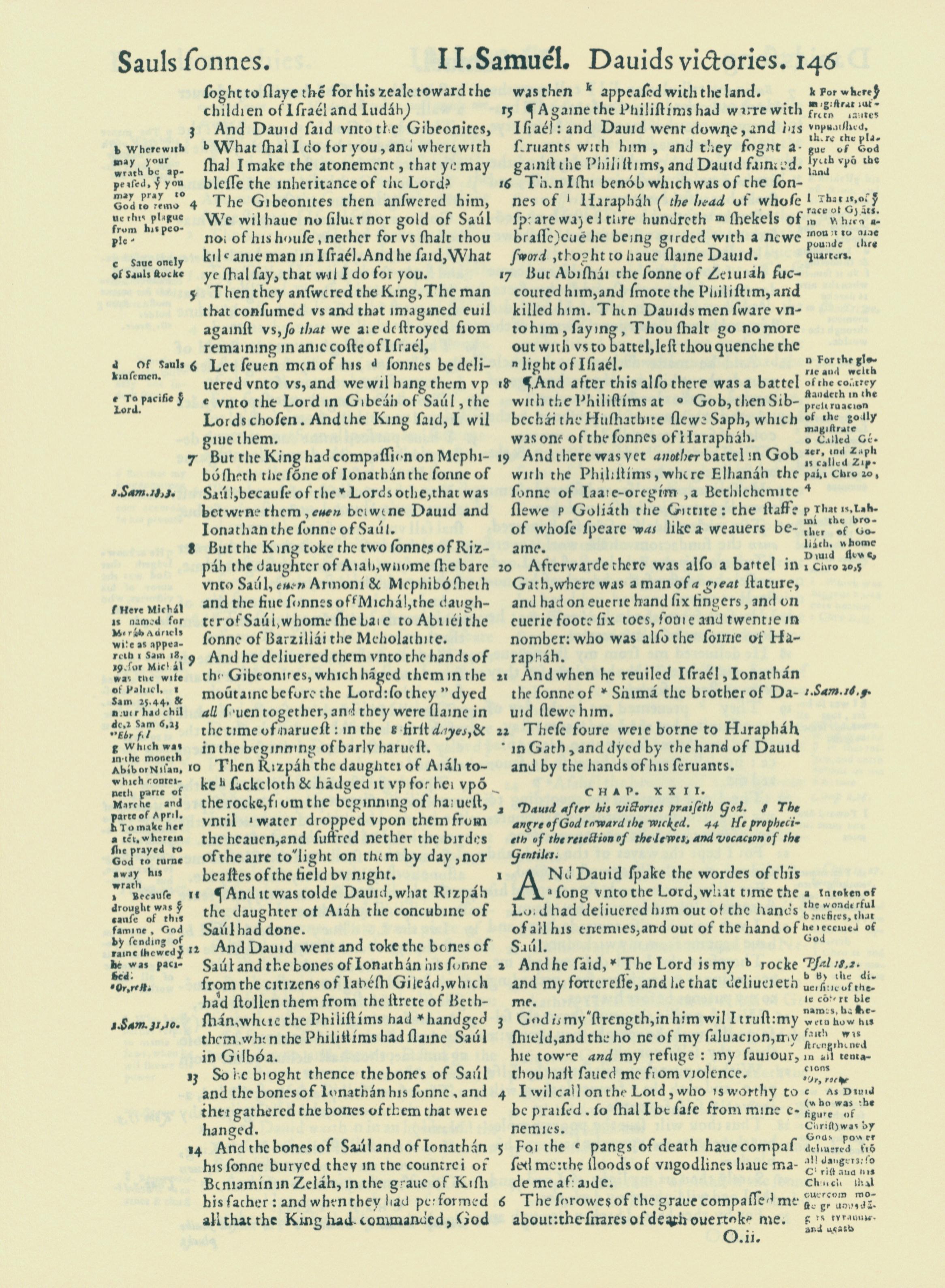 1560年THE BIBLE AND HOLY SCRIPTURES 撒母耳记下 21 章 3 节到 22 章 6 节