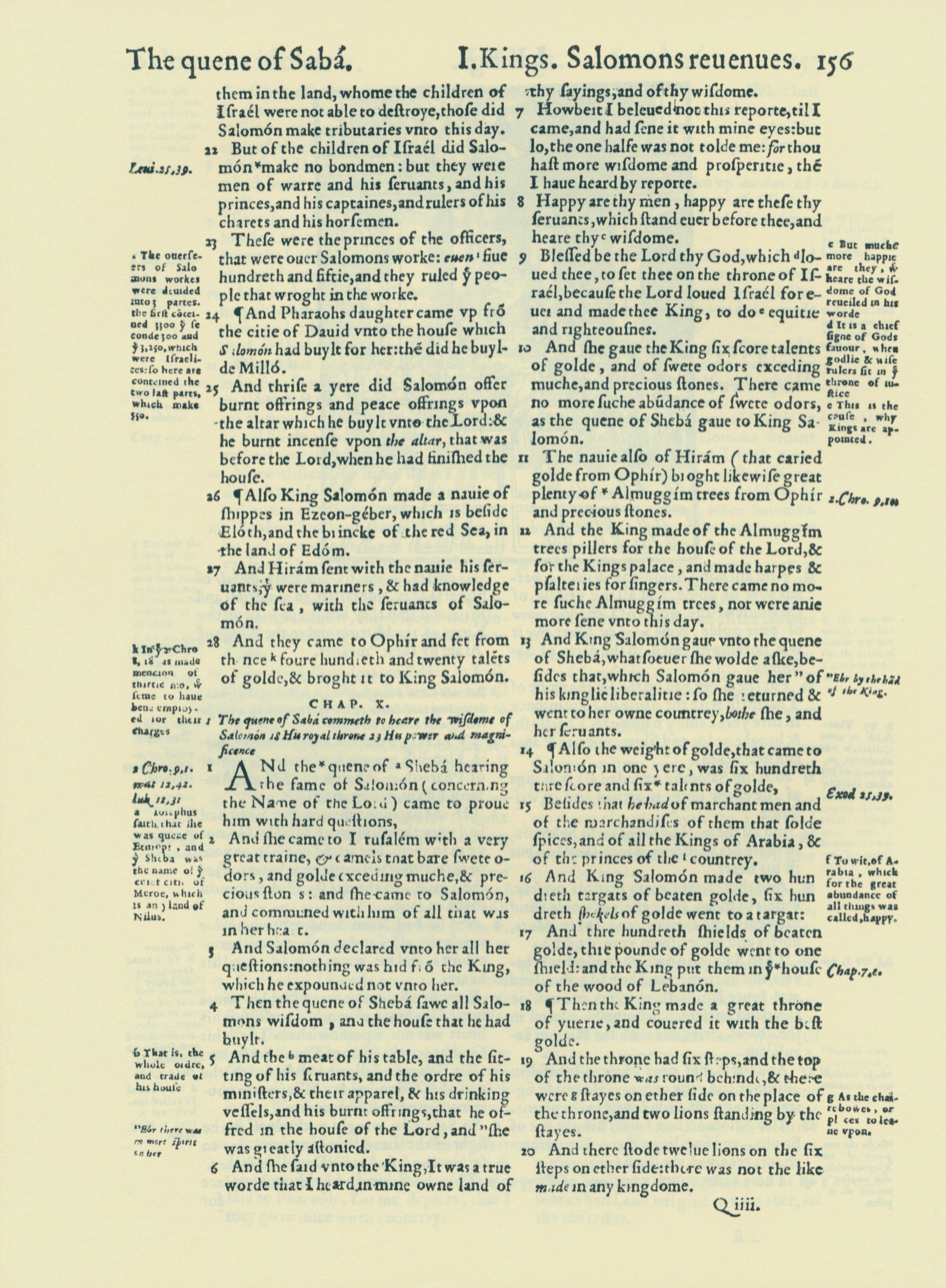 1560年THE BIBLE AND HOLY SCRIPTURES 列王纪上 9 章 22 节到 10 章 20 节