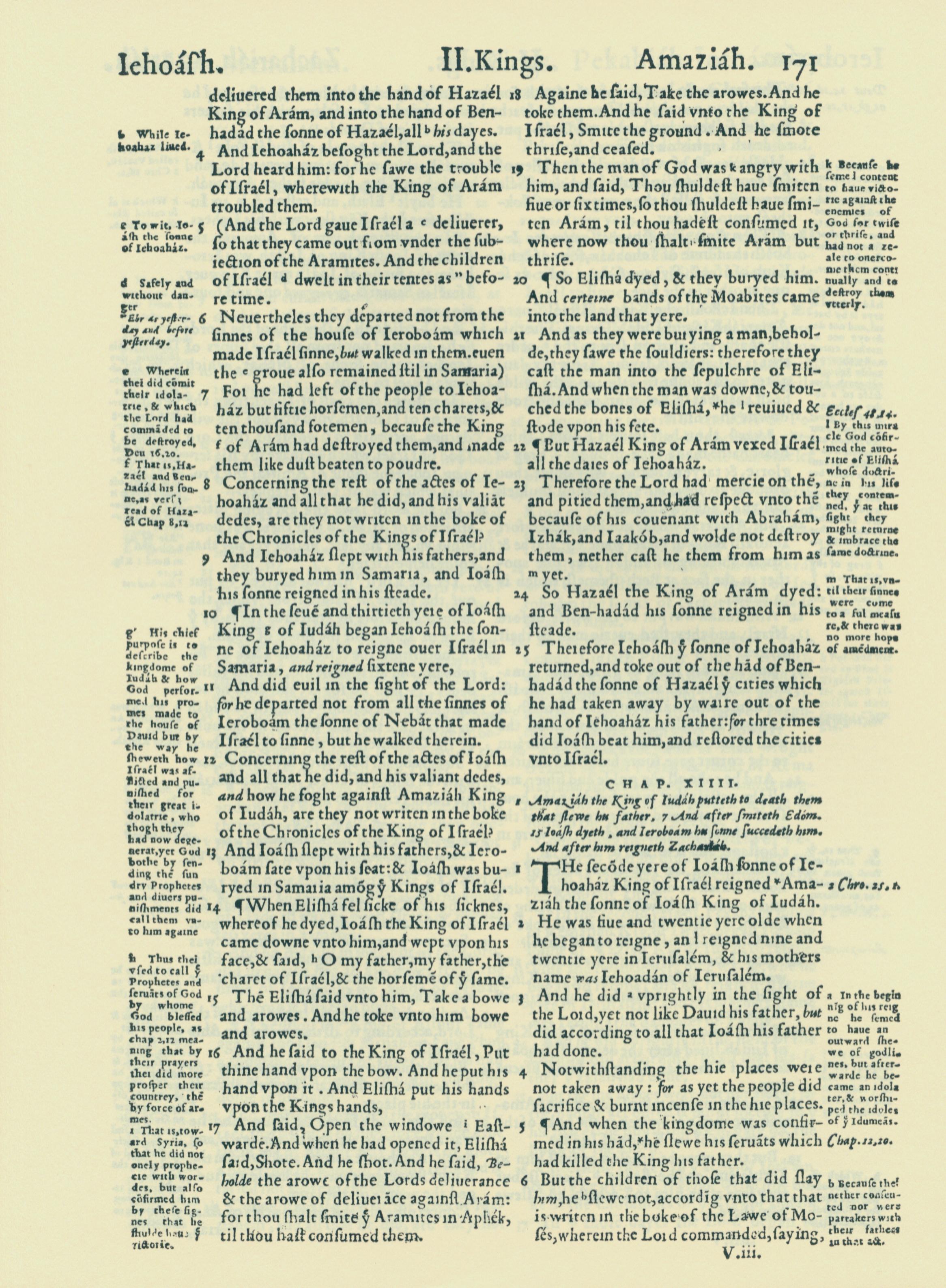 1560年THE BIBLE AND HOLY SCRIPTURES 列王纪下 13 章 4 节到 14 章 6 节