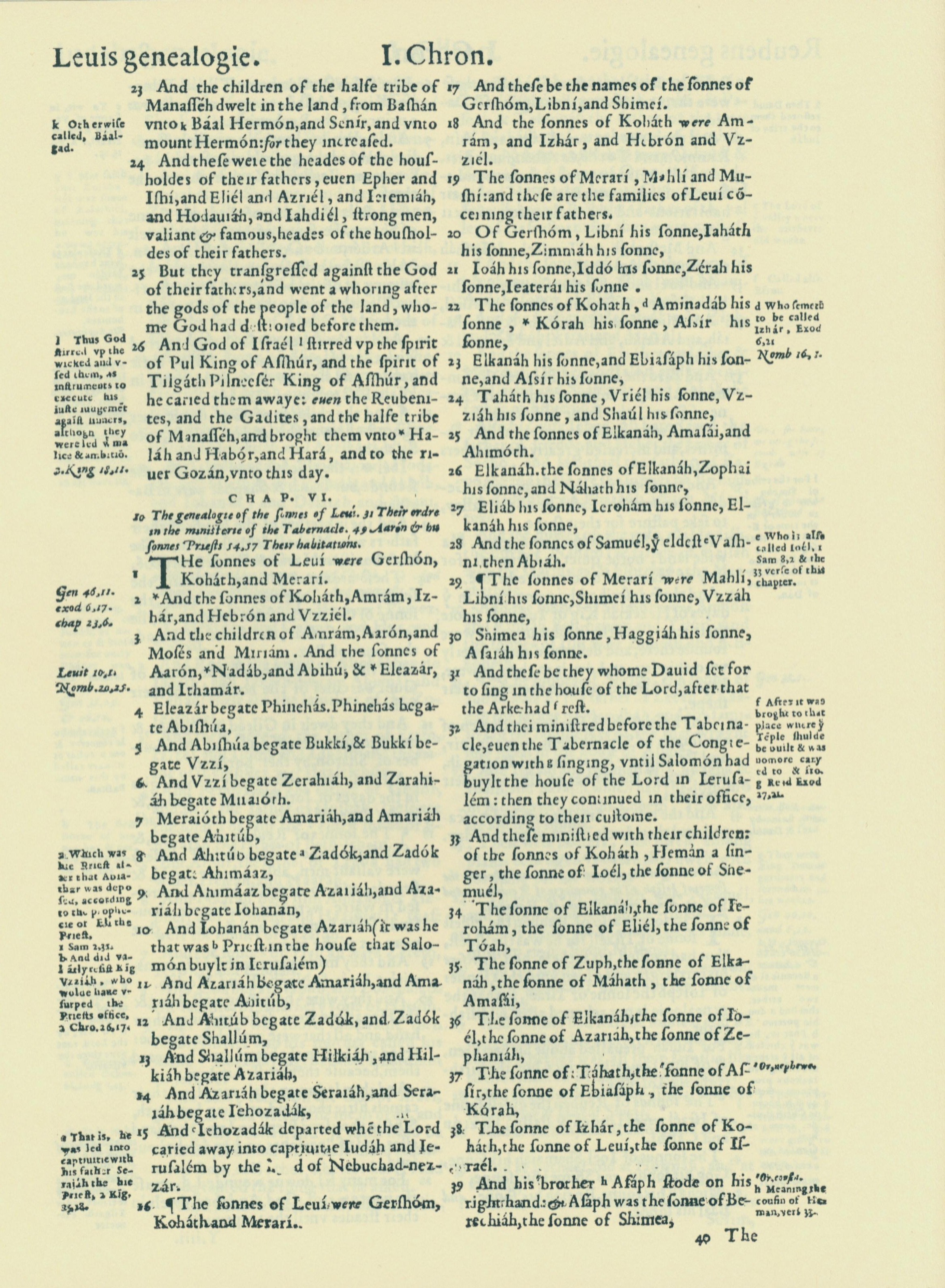 1560年THE BIBLE AND HOLY SCRIPTURES 历代志上 5 章 23 节到 6 章 39 节