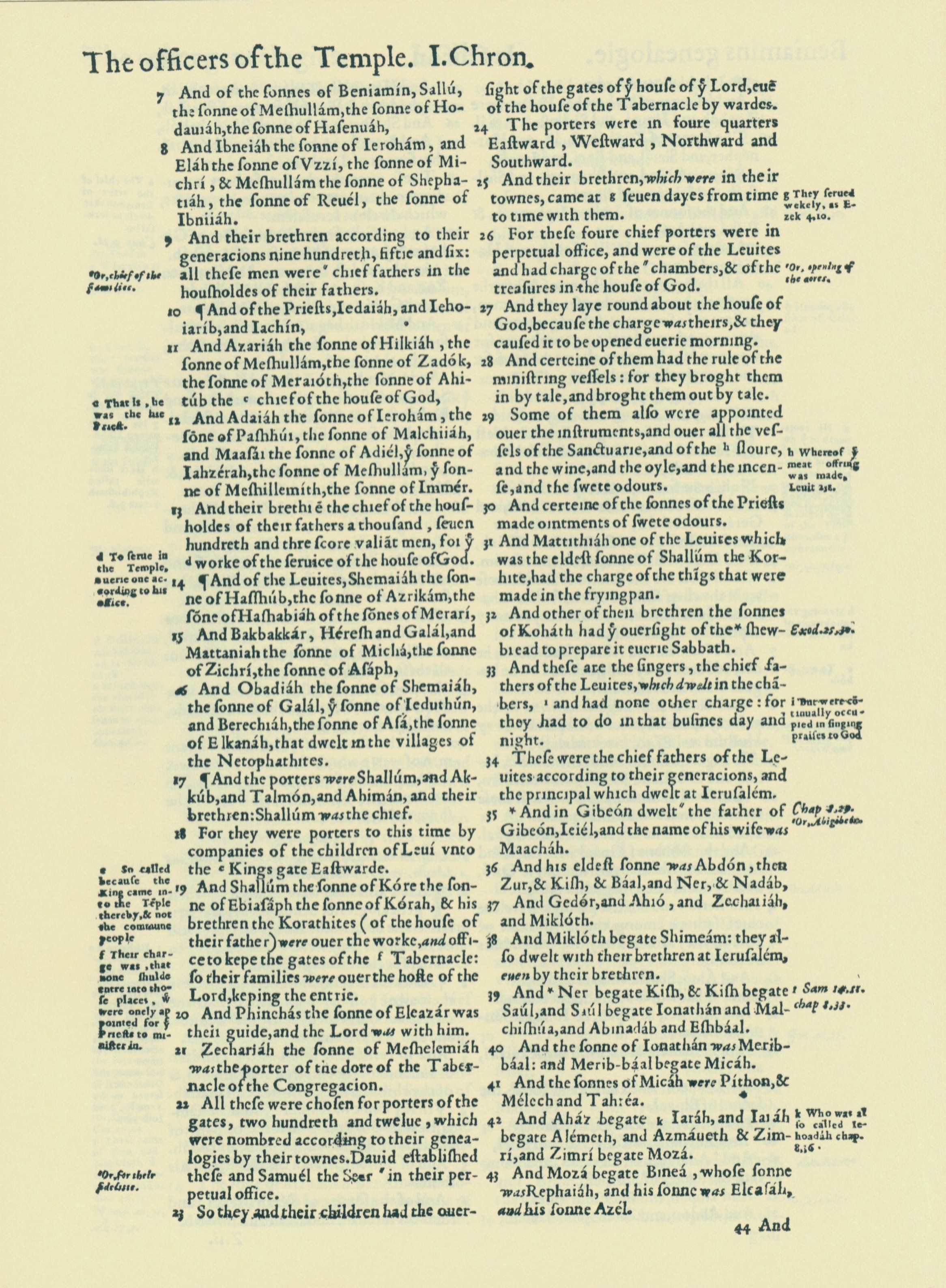 1560年THE BIBLE AND HOLY SCRIPTURES 历代志上 9 章 7 节到 9 章 43 节