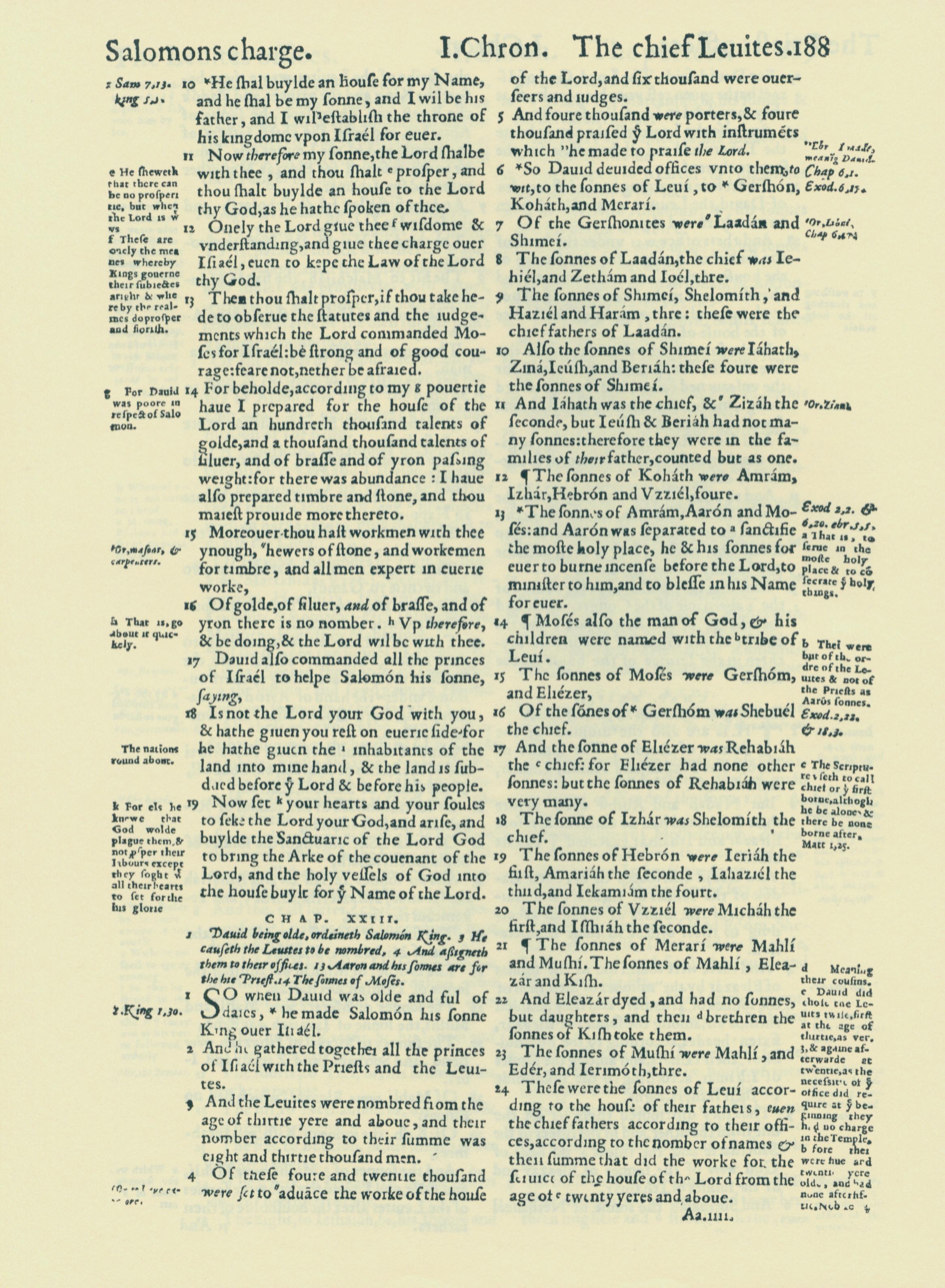 1560年THE BIBLE AND HOLY SCRIPTURES 历代志上 22 章 10 节到 23 章 24 节