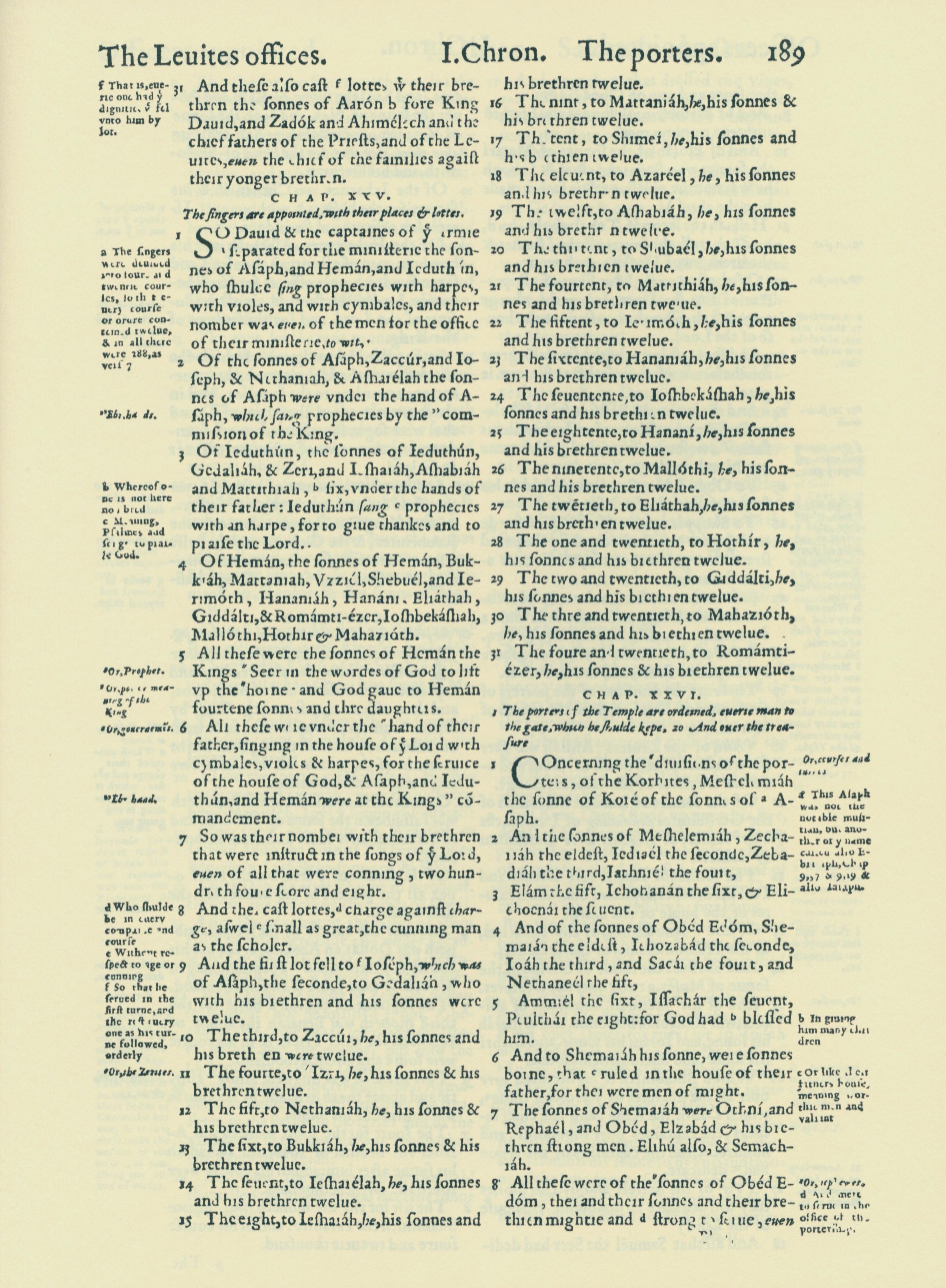 1560年THE BIBLE AND HOLY SCRIPTURES 历代志上 24 章 31 节到 26 章 8 节