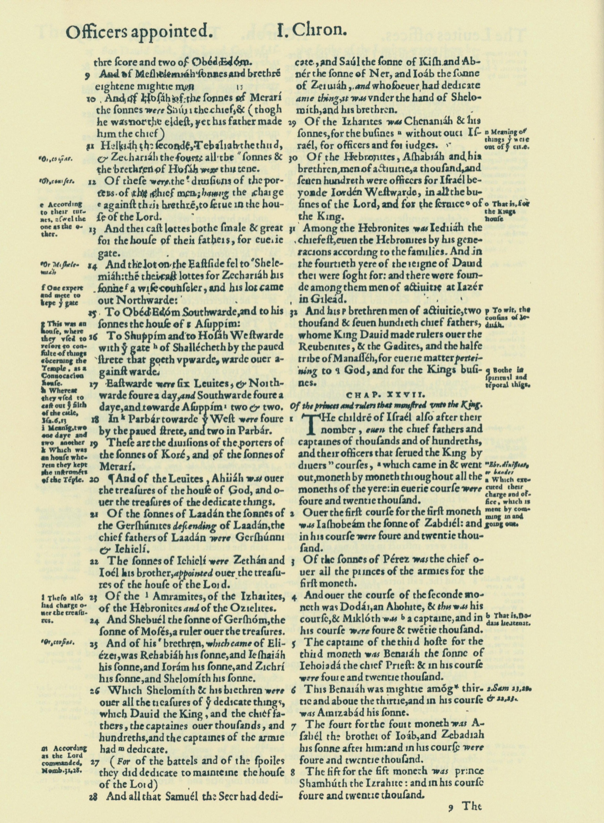 1560年THE BIBLE AND HOLY SCRIPTURES 历代志上 26 章 9 节到 27 章 8 节
