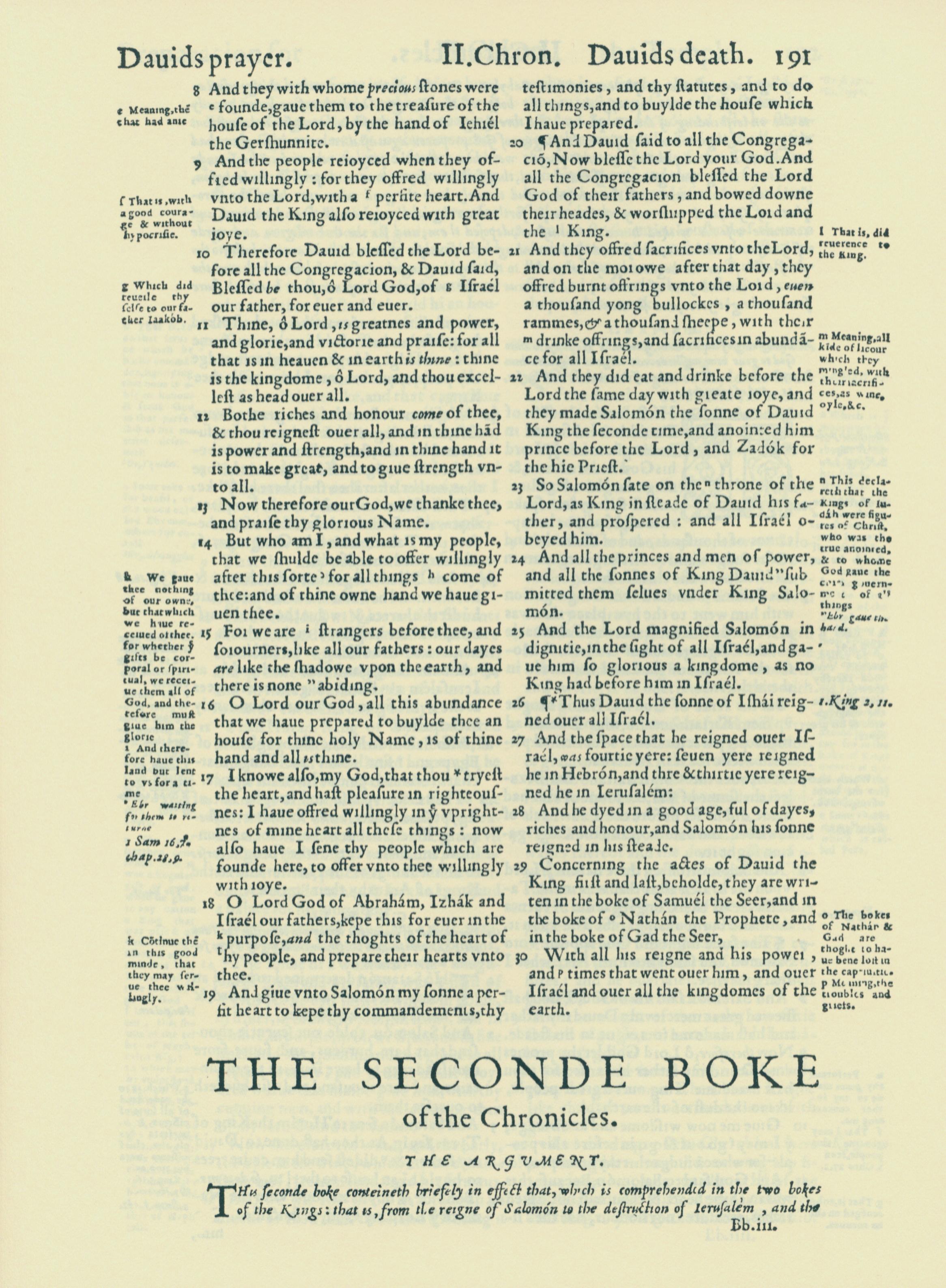 1560年THE BIBLE AND HOLY SCRIPTURES 历代志上 29 章 8 节到 29 章 30 节