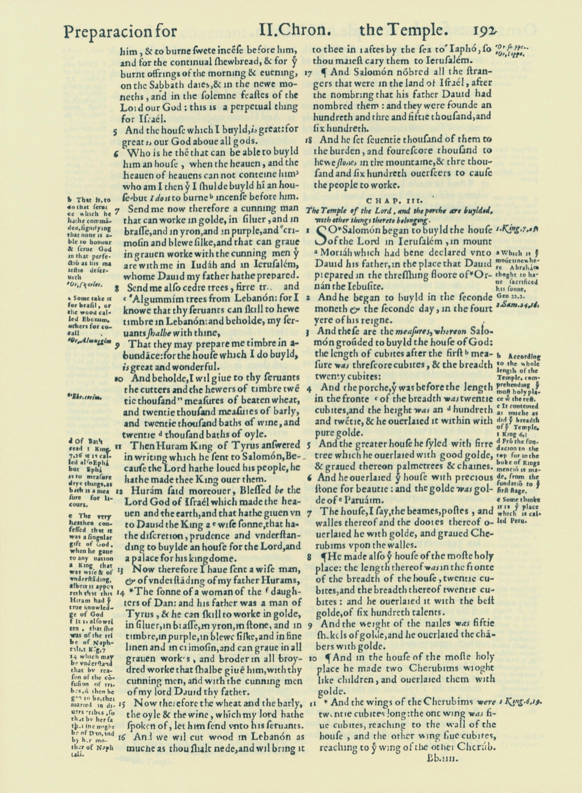 1560年THE BIBLE AND HOLY SCRIPTURES 历代志下 2 章 5 节到 3 章 11 节
