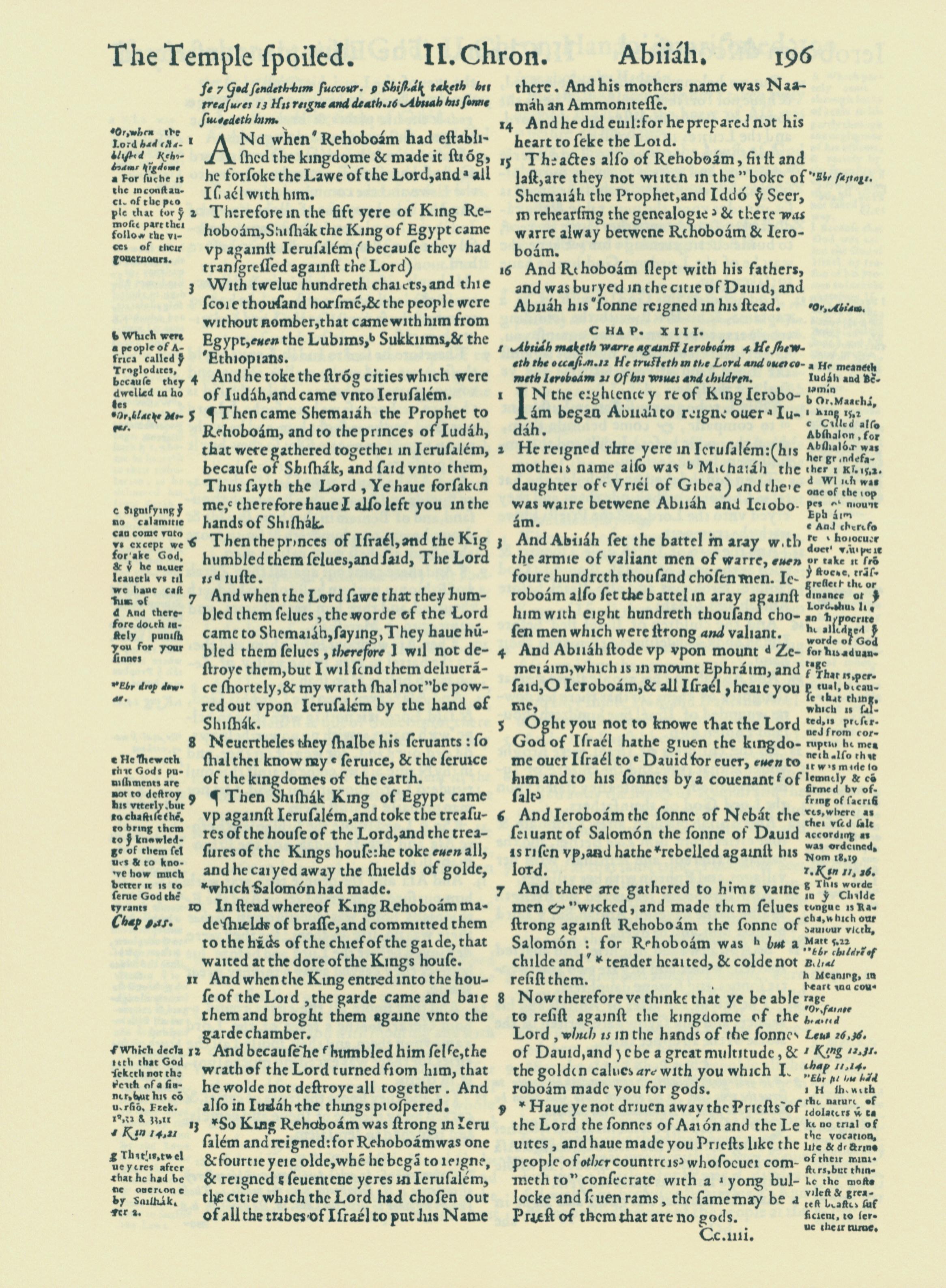 1560年THE BIBLE AND HOLY SCRIPTURES 历代志下 12 章 1 节到 13 章 9 节