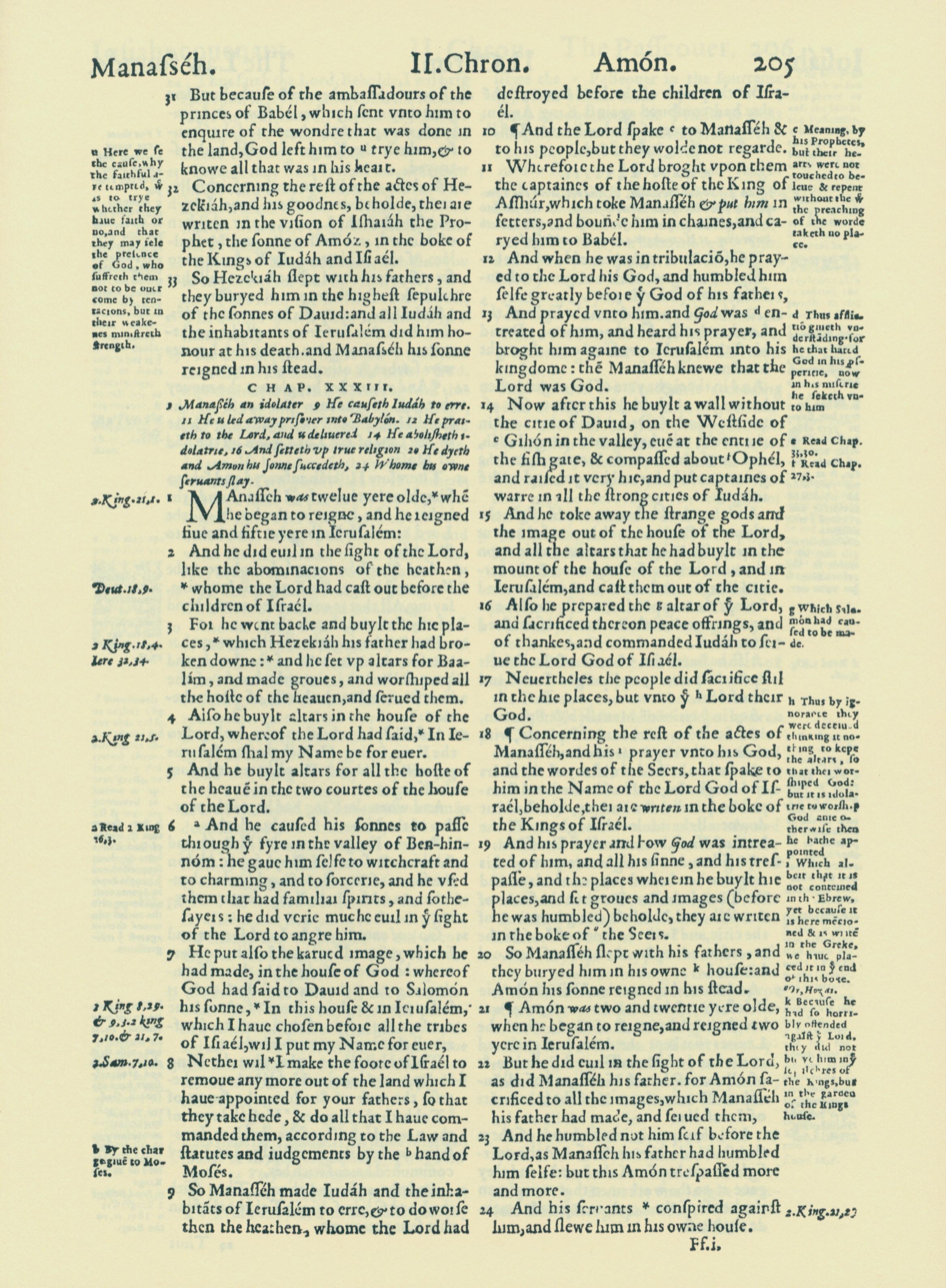 1560年THE BIBLE AND HOLY SCRIPTURES 历代志下 32 章 31 节到 33 章 24 节