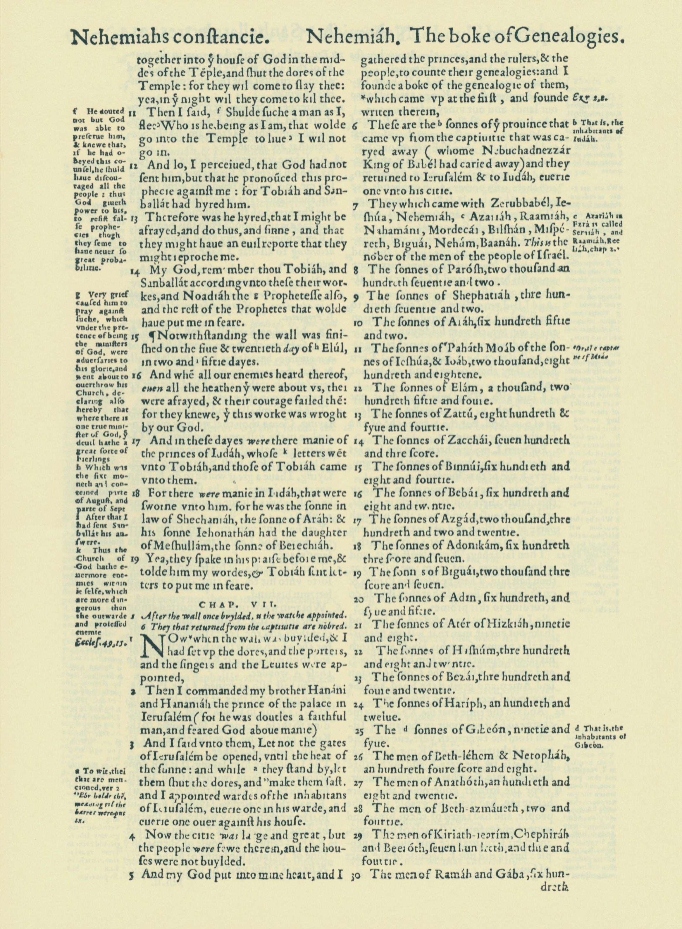 1560年THE BIBLE AND HOLY SCRIPTURES 尼希米记 6 章 11 节到 7 章 30 节