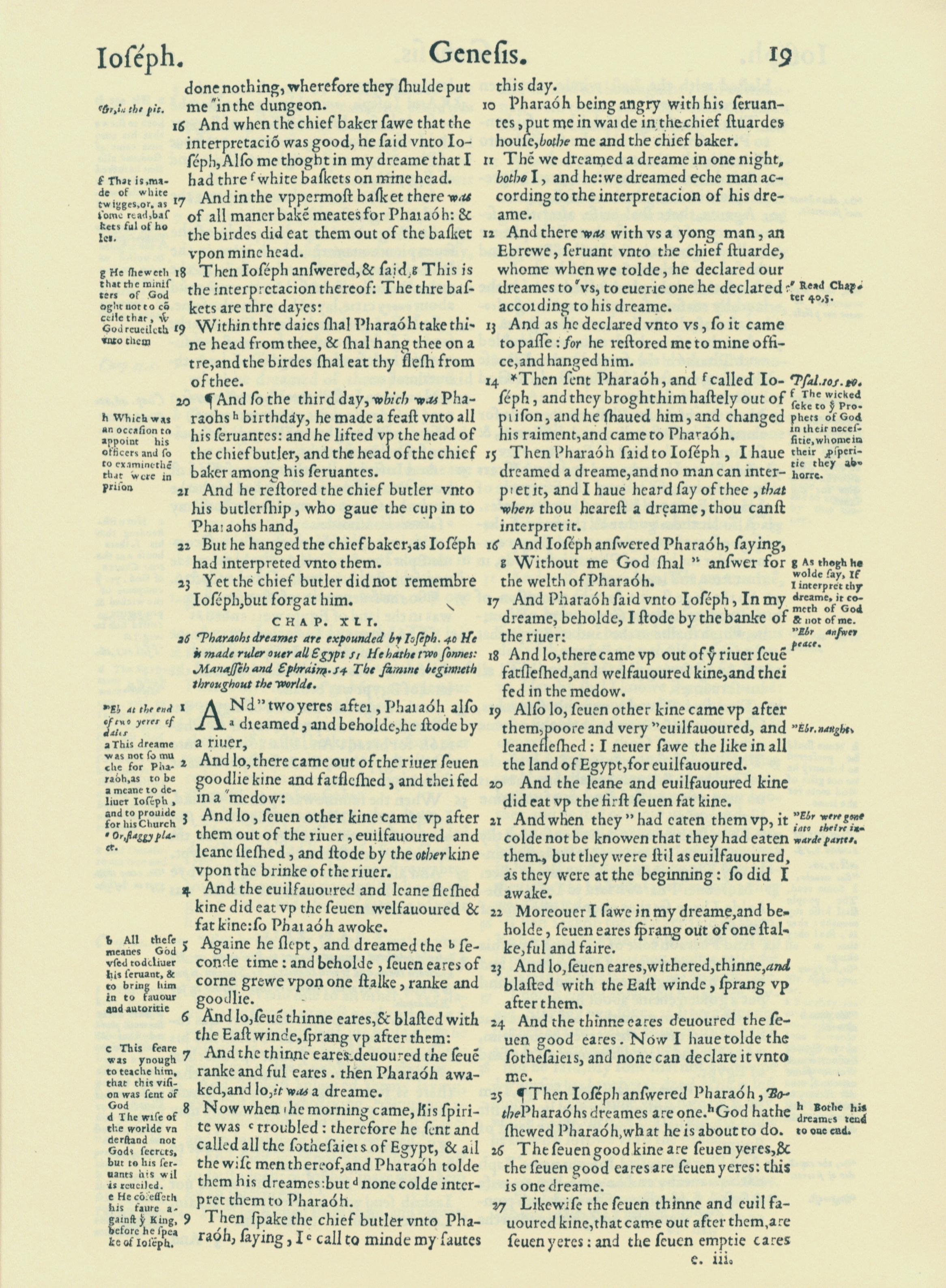 1560年THE BIBLE AND HOLY SCRIPTURES 创世记 40 章 26 节到 41 章 27 节