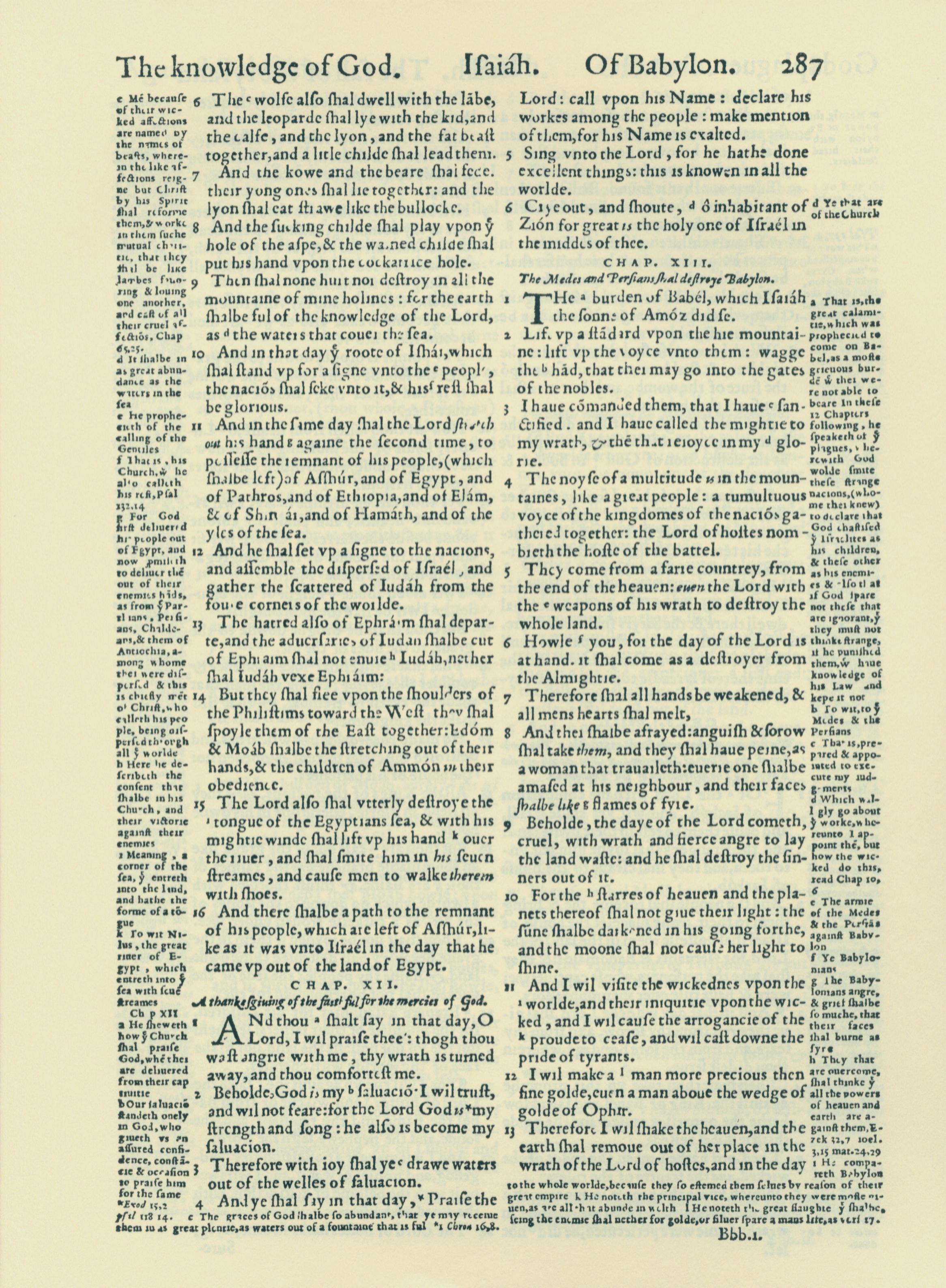1560年THE BIBLE AND HOLY SCRIPTURES 以赛亚书 11 章 6 节到 13 章 13 节