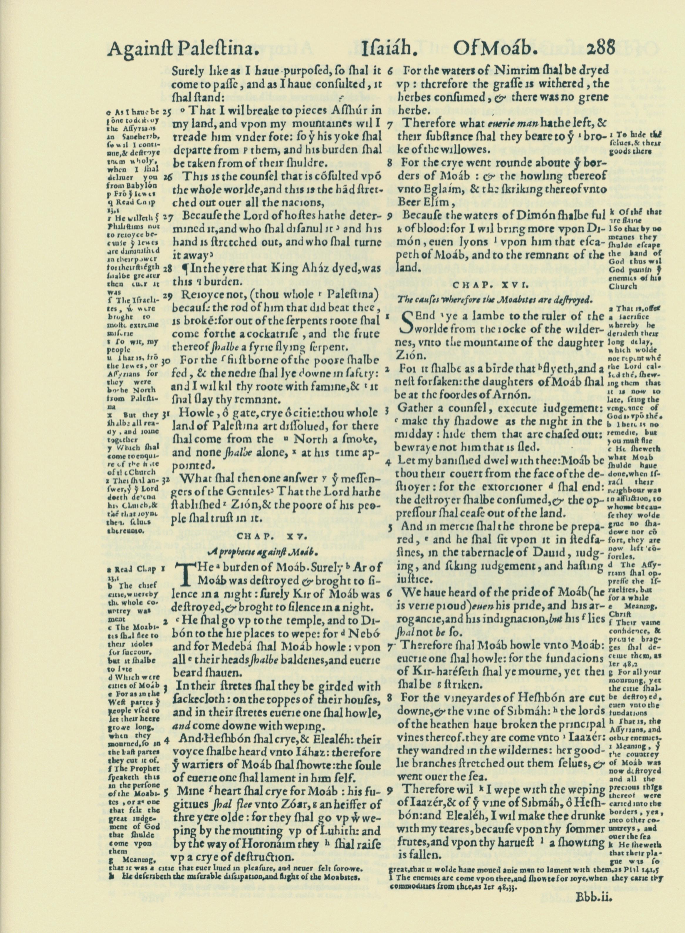 1560年THE BIBLE AND HOLY SCRIPTURES 以赛亚书 14 章 25 节到 16 章 9 节