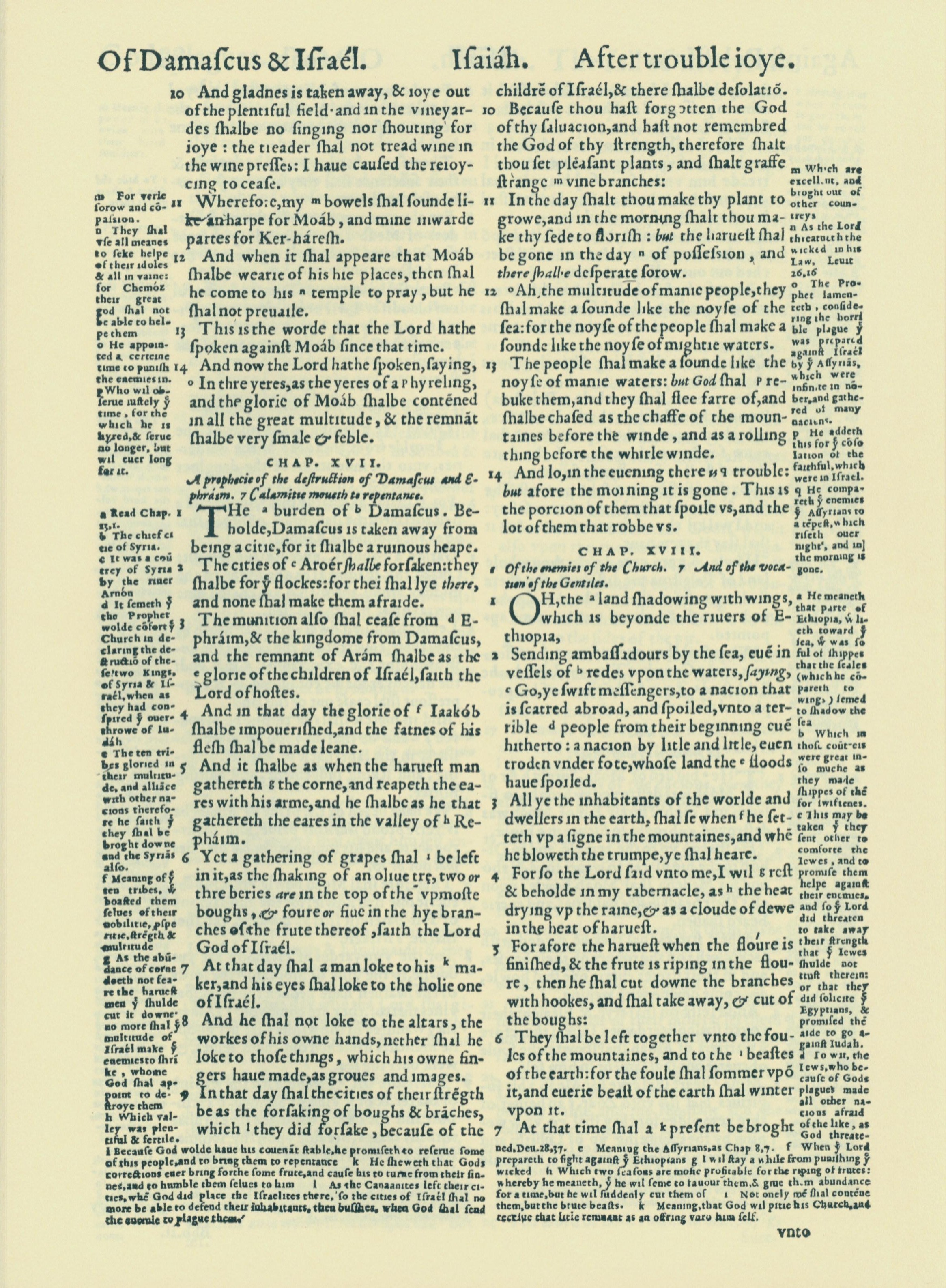 1560年THE BIBLE AND HOLY SCRIPTURES 以赛亚书 16 章 10 节到 18 章 7 节