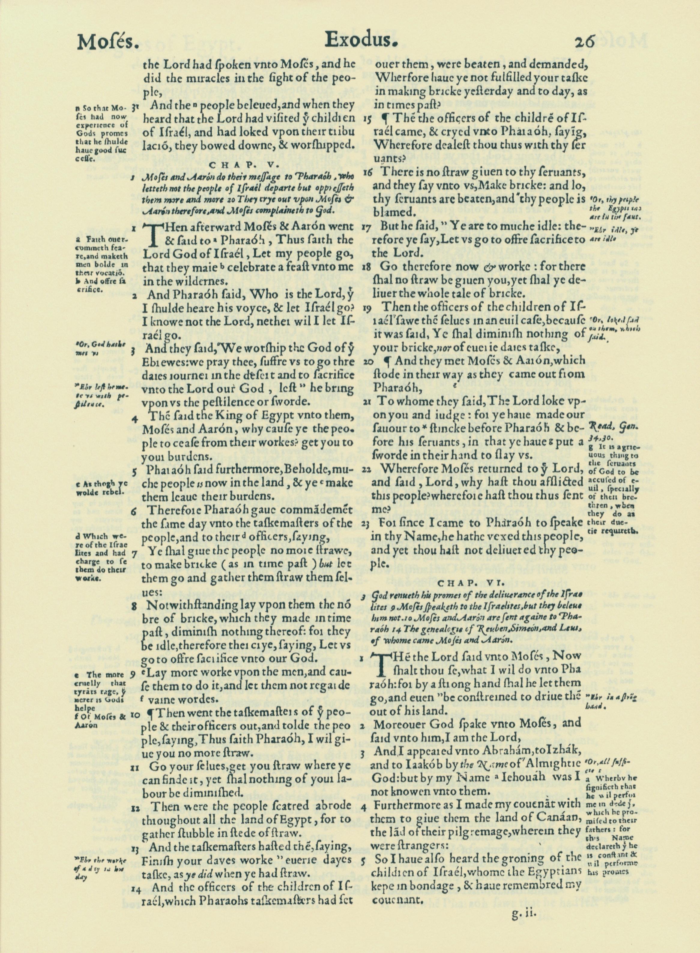 1560年THE BIBLE AND HOLY SCRIPTURES 出埃及记 4 章 31 节到 6 章 5 节