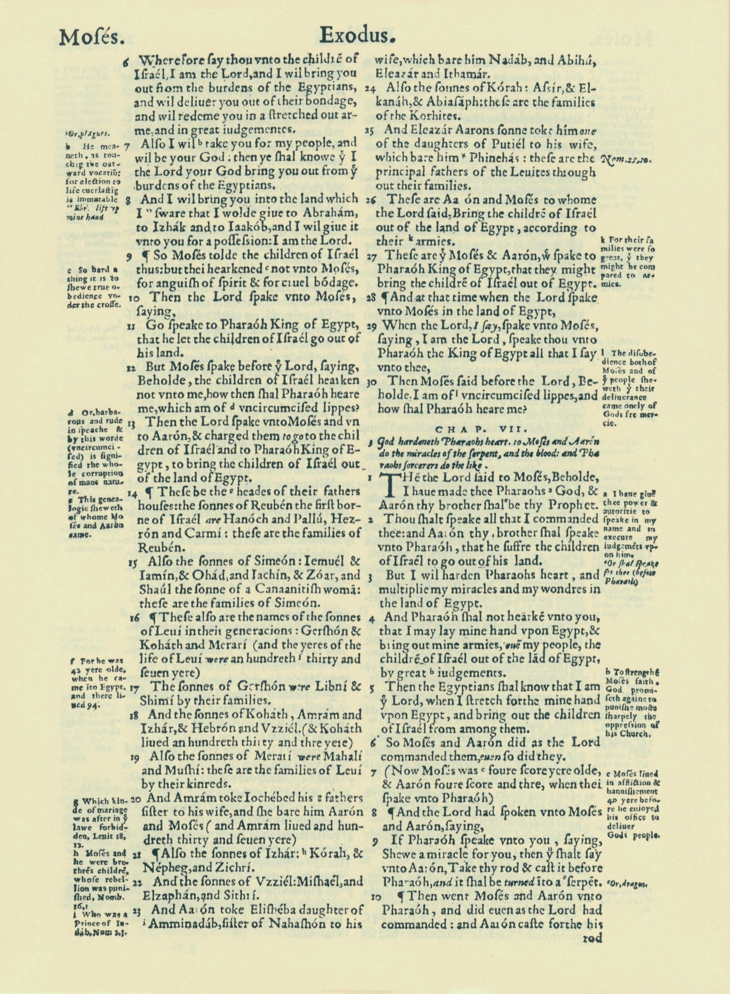 1560年THE BIBLE AND HOLY SCRIPTURES 出埃及记 6 章 6 节到 7 章 10 节