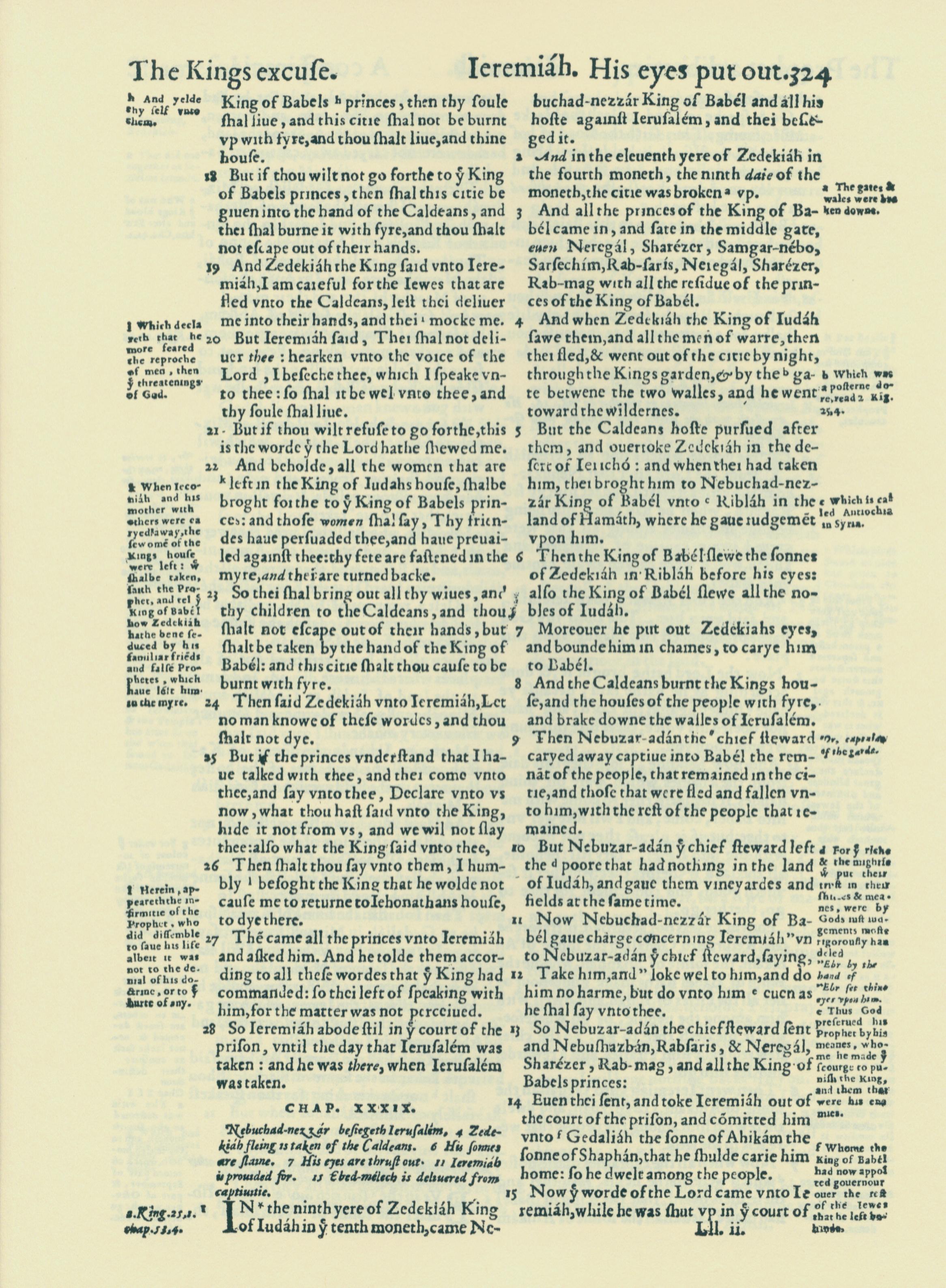 1560年THE BIBLE AND HOLY SCRIPTURES 耶利米书 38 章 18 节到 39 章 15 节