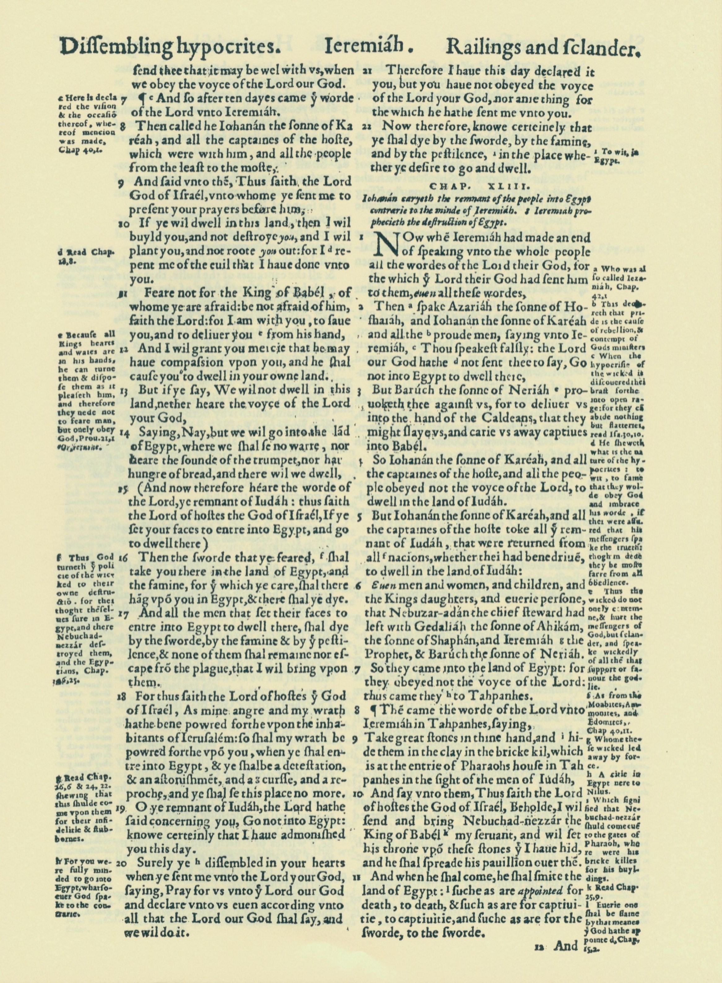 1560年THE BIBLE AND HOLY SCRIPTURES 耶利米书 42 章 7 节到 43 章 11 节
