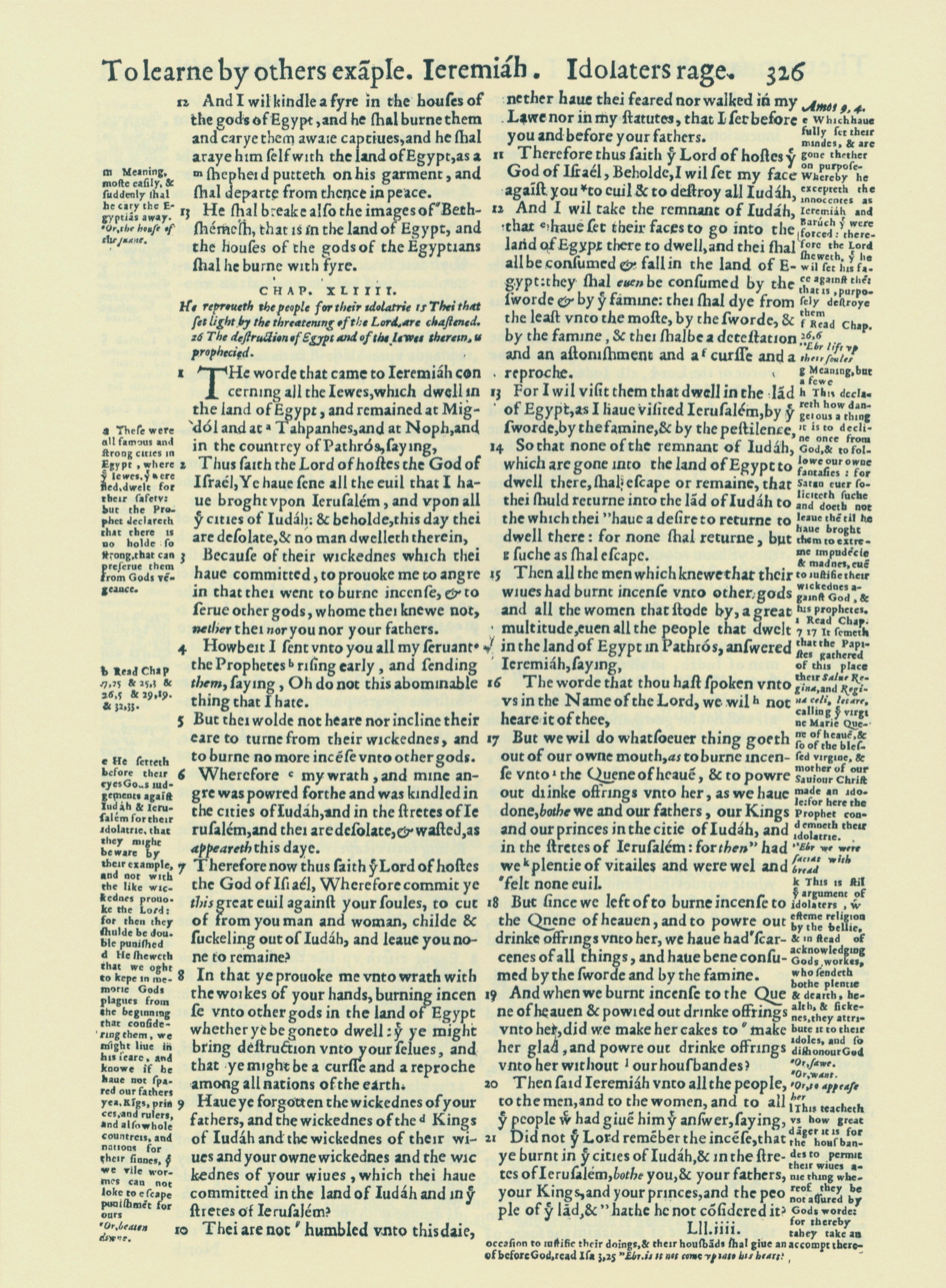 1560年THE BIBLE AND HOLY SCRIPTURES 耶利米书 43 章 12 节到 44 章 21 节