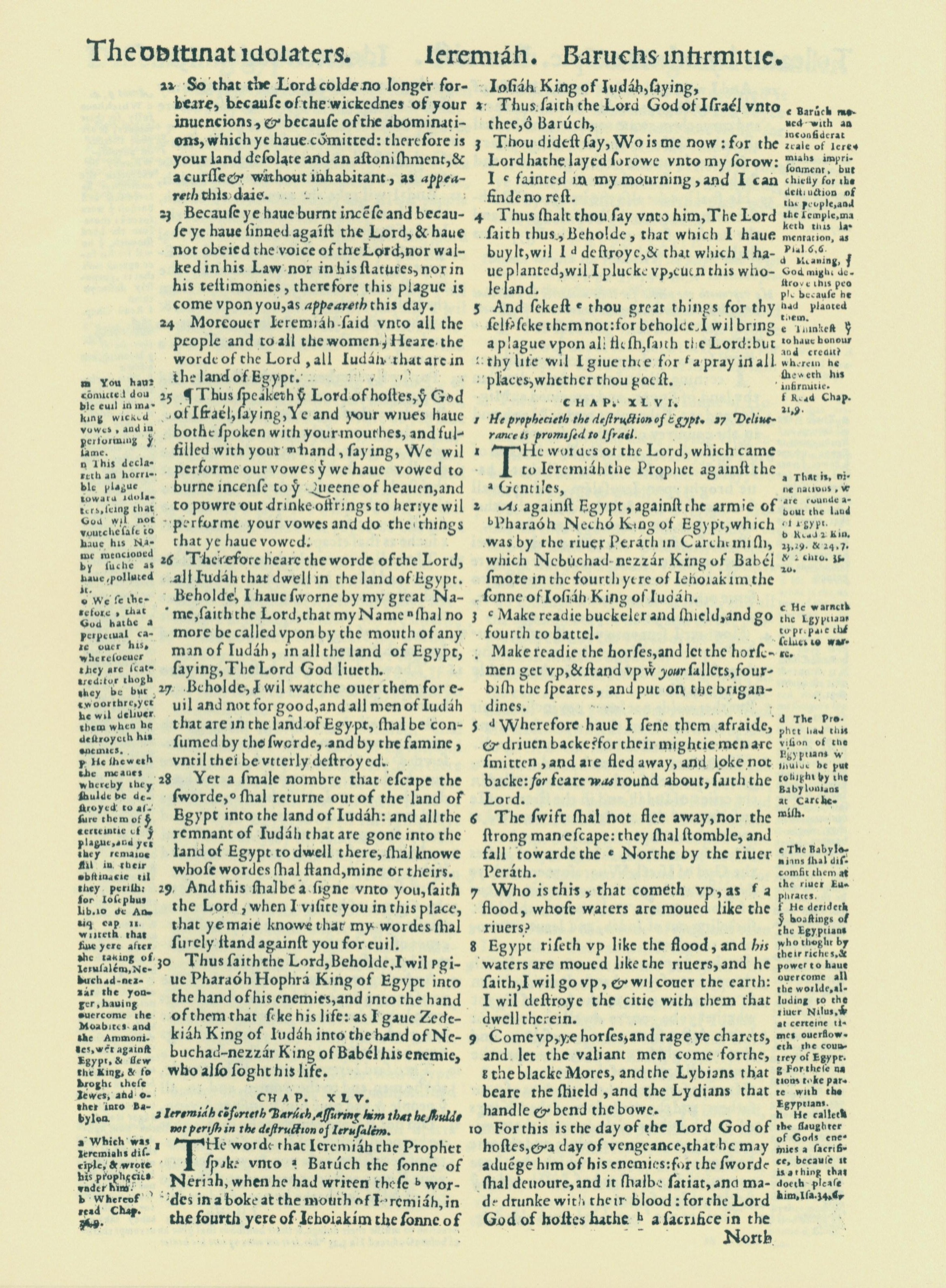 1560年THE BIBLE AND HOLY SCRIPTURES 耶利米书 44 章 22 节到 46 章 10 节