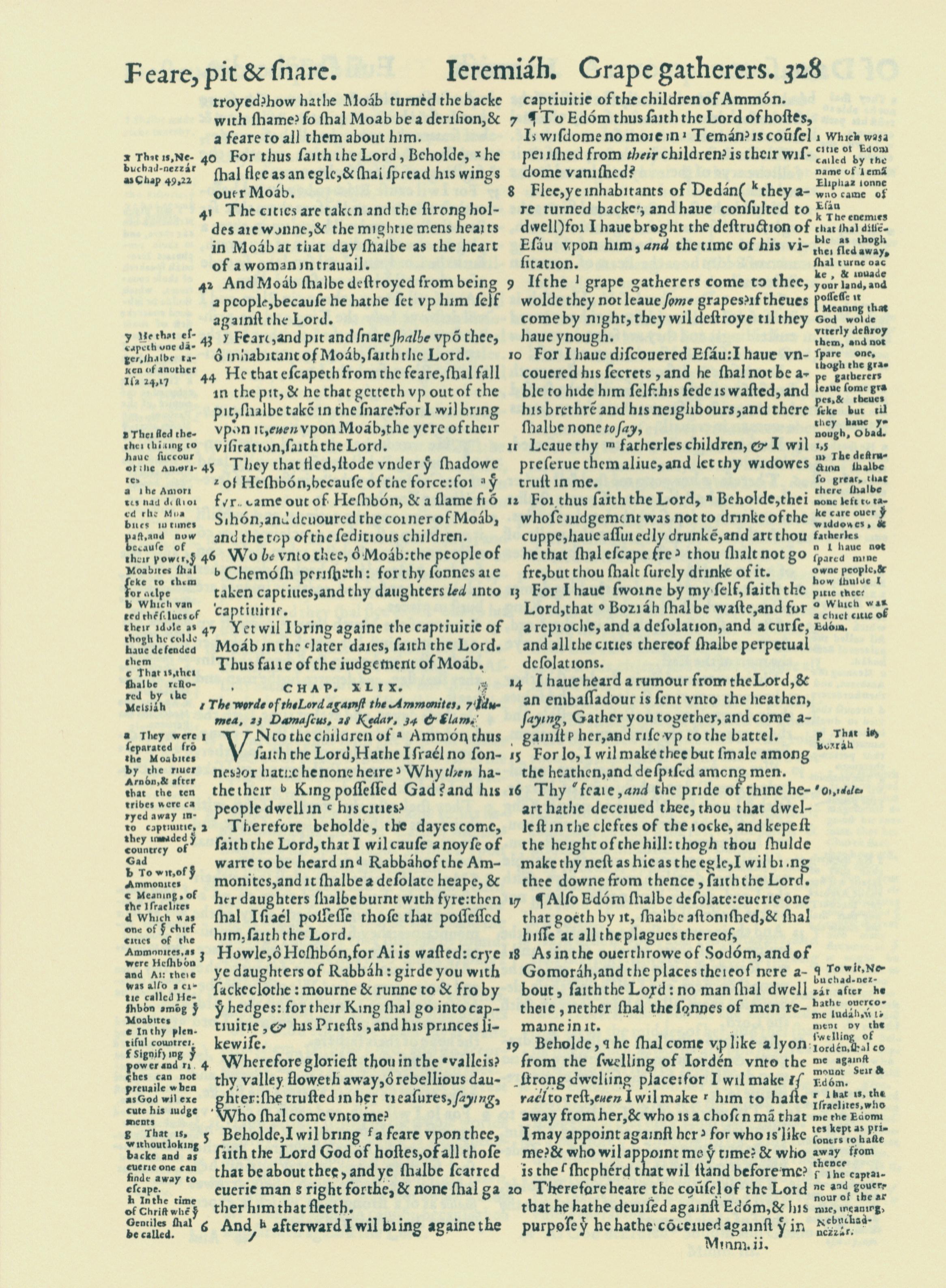 1560年THE BIBLE AND HOLY SCRIPTURES 耶利米书 48 章 40 节到 49 章 20 节
