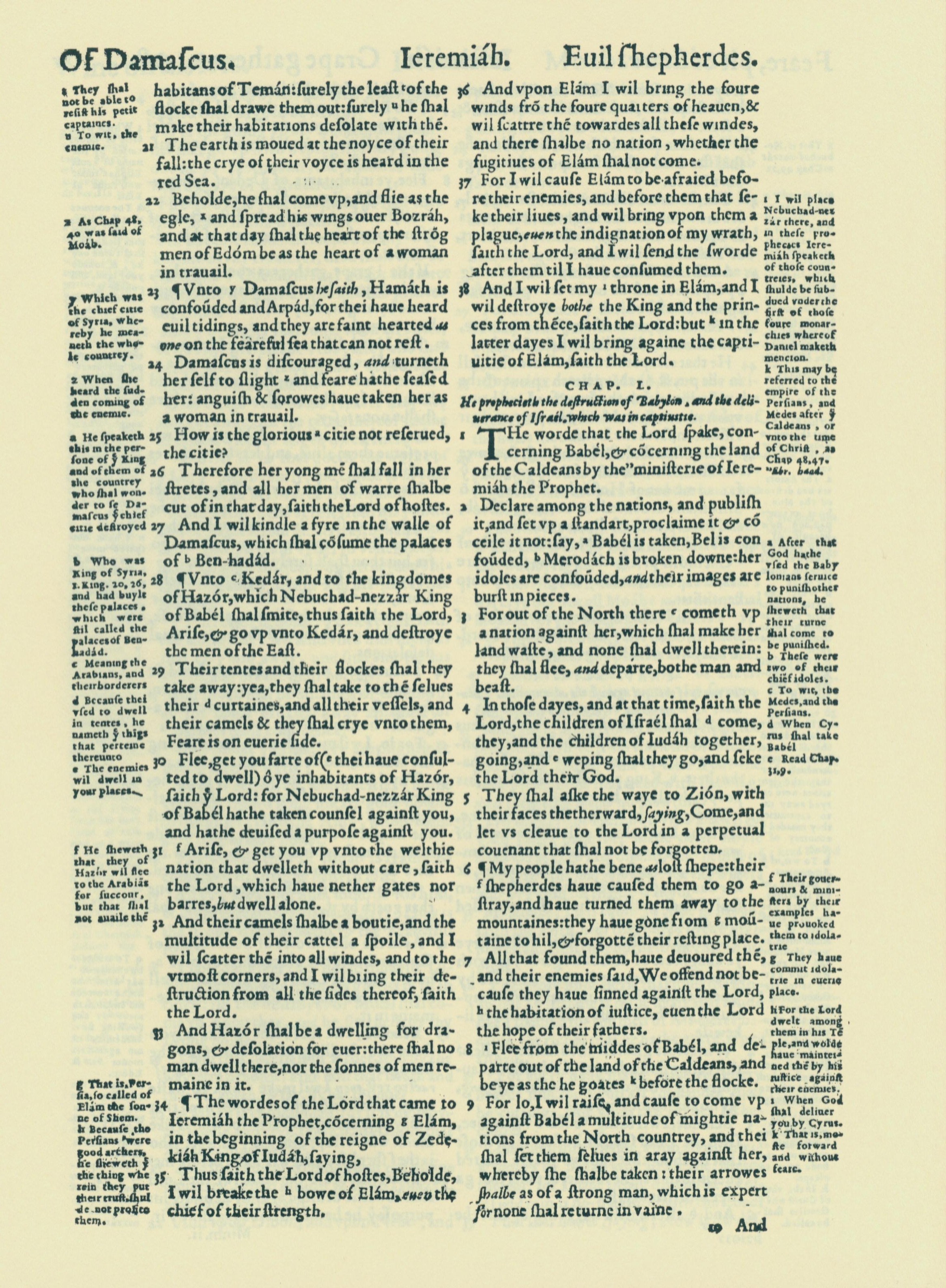 1560年THE BIBLE AND HOLY SCRIPTURES 耶利米书 49 章 21 节到 50 章 9 节