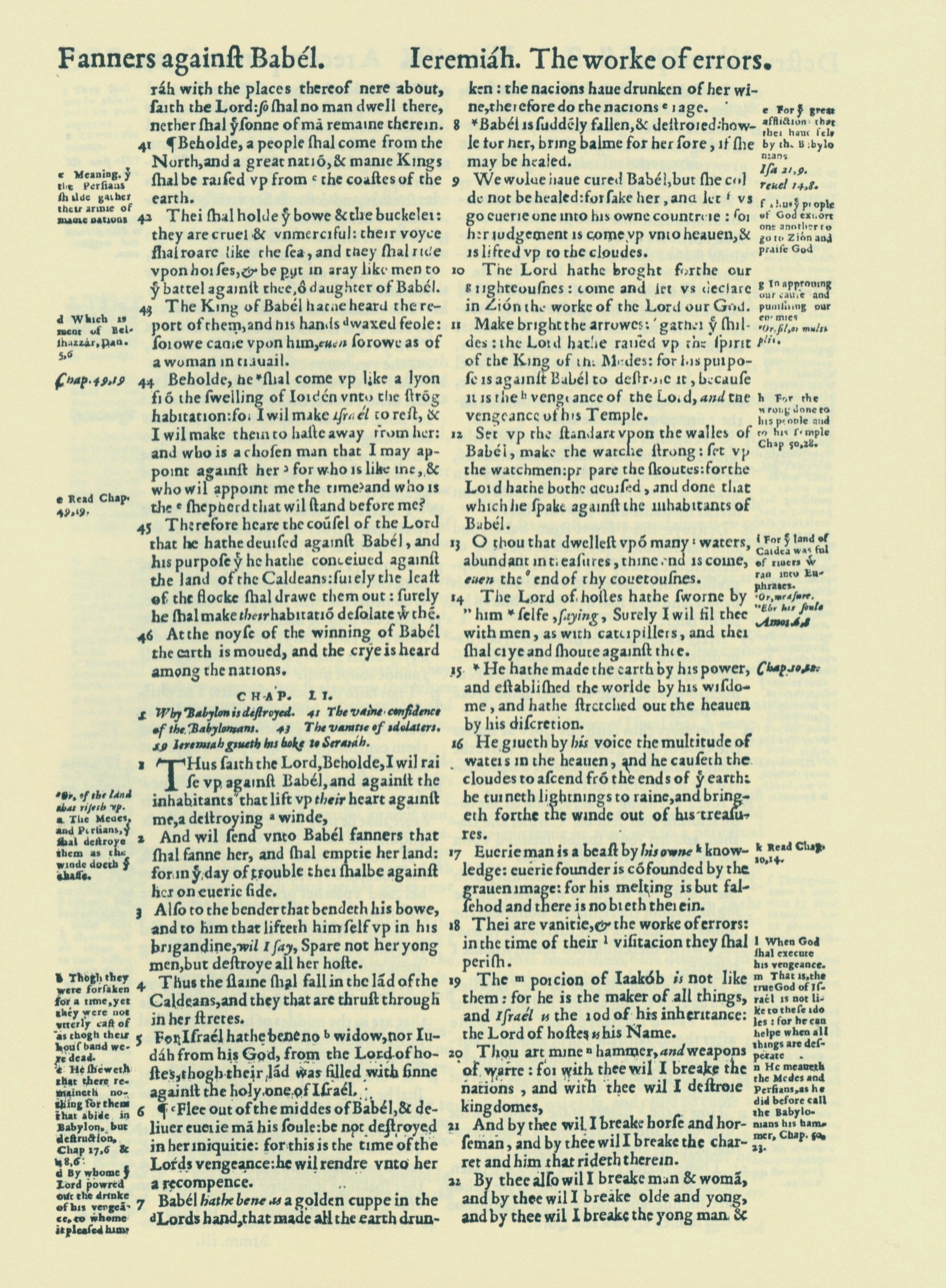 1560年THE BIBLE AND HOLY SCRIPTURES 耶利米书 50 章 41 节到 51 章 22 节