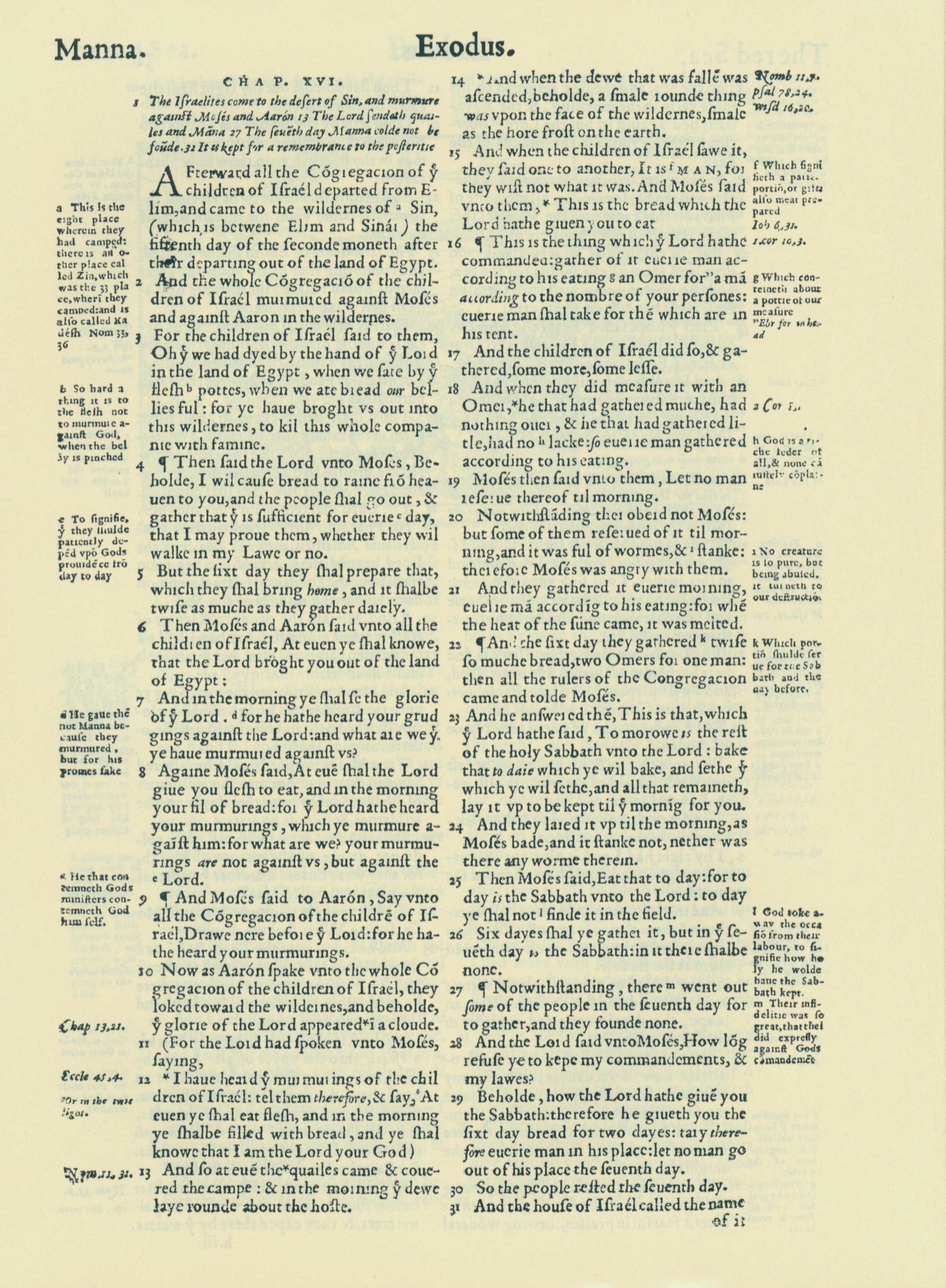 1560年THE BIBLE AND HOLY SCRIPTURES 出埃及记 16 章 1 节到 16 章 31 节