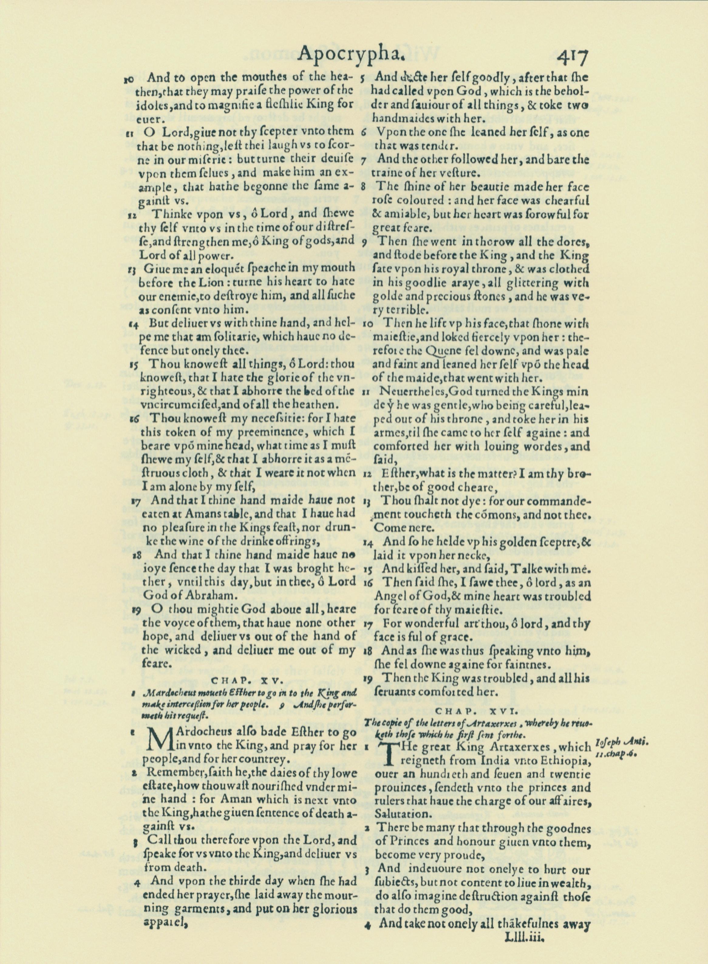 1560年THE BIBLE AND HOLY SCRIPTURES 附录 14 章 10 节到 16 章 4 节