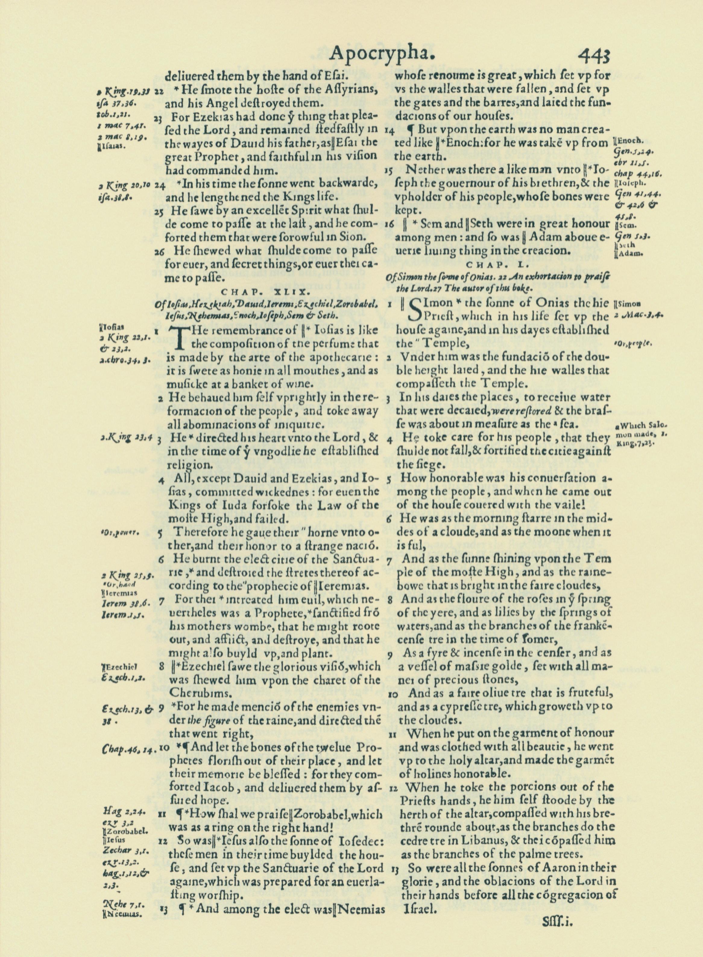 1560年THE BIBLE AND HOLY SCRIPTURES 附录 48 章 22 节到 50 章 13 节