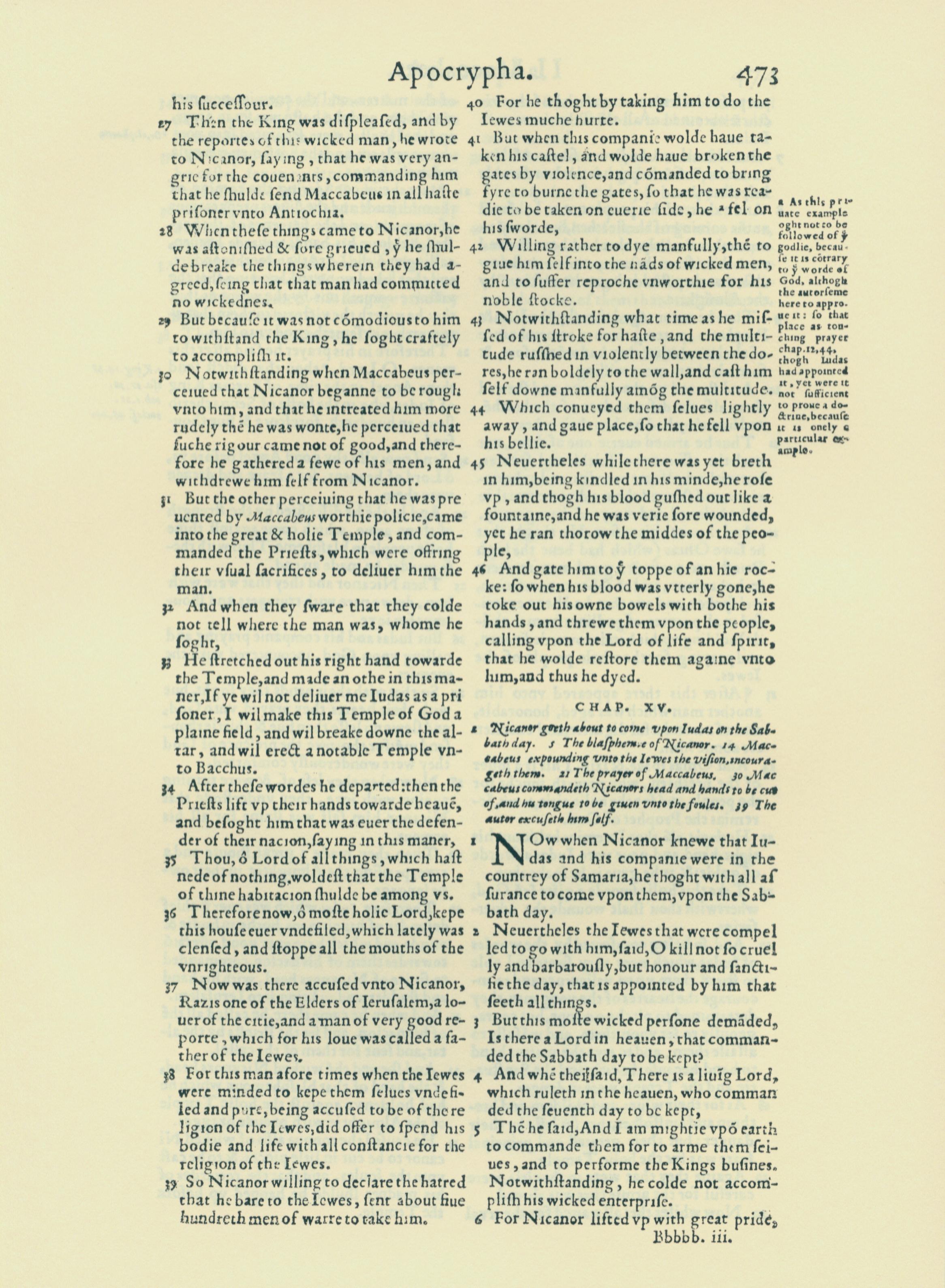1560年THE BIBLE AND HOLY SCRIPTURES 附录 14 章 27 节到 15 章 6 节