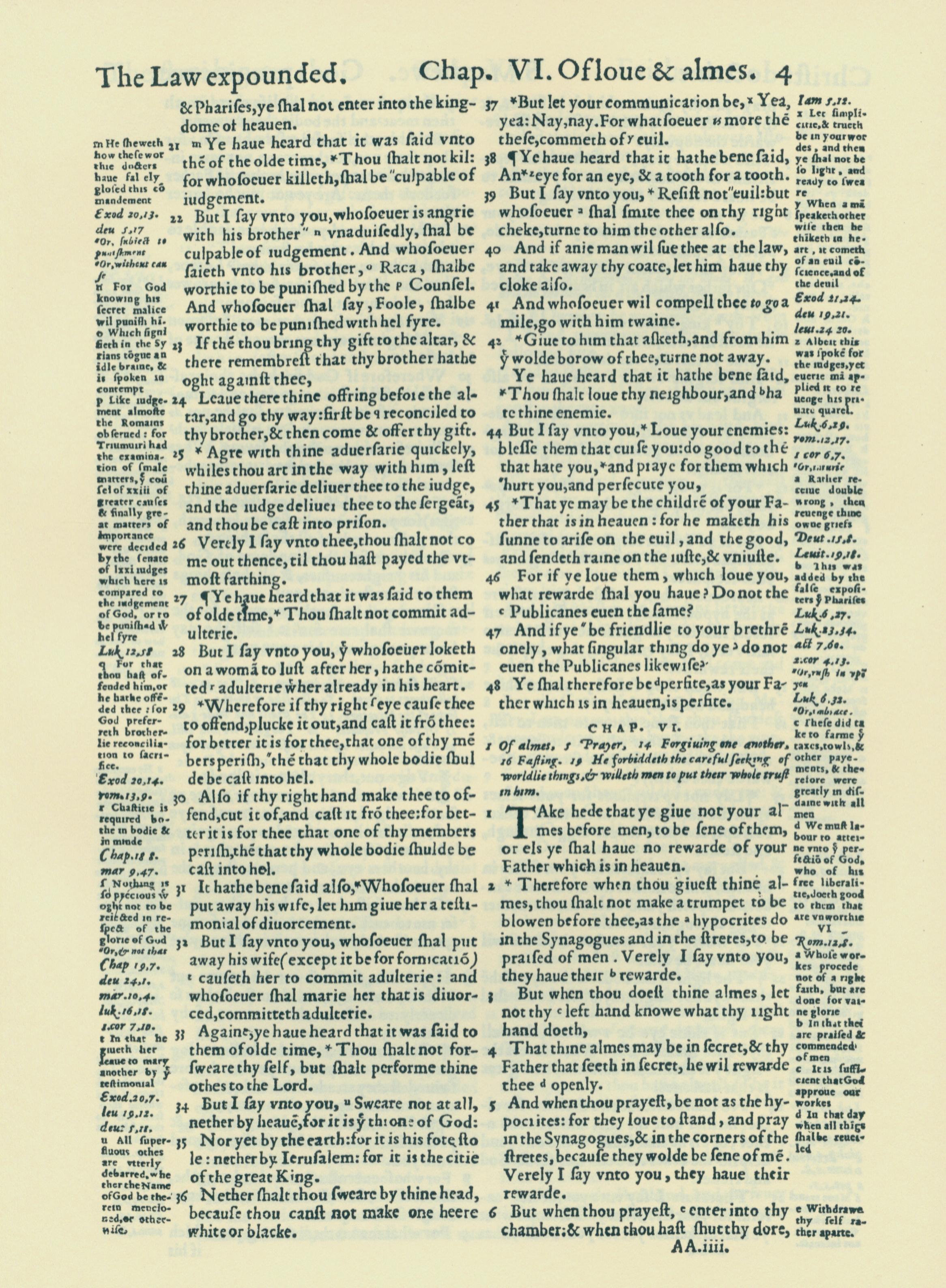1560年THE BIBLE AND HOLY SCRIPTURES 马太福音 5 章 21 节到 6 章 6 节