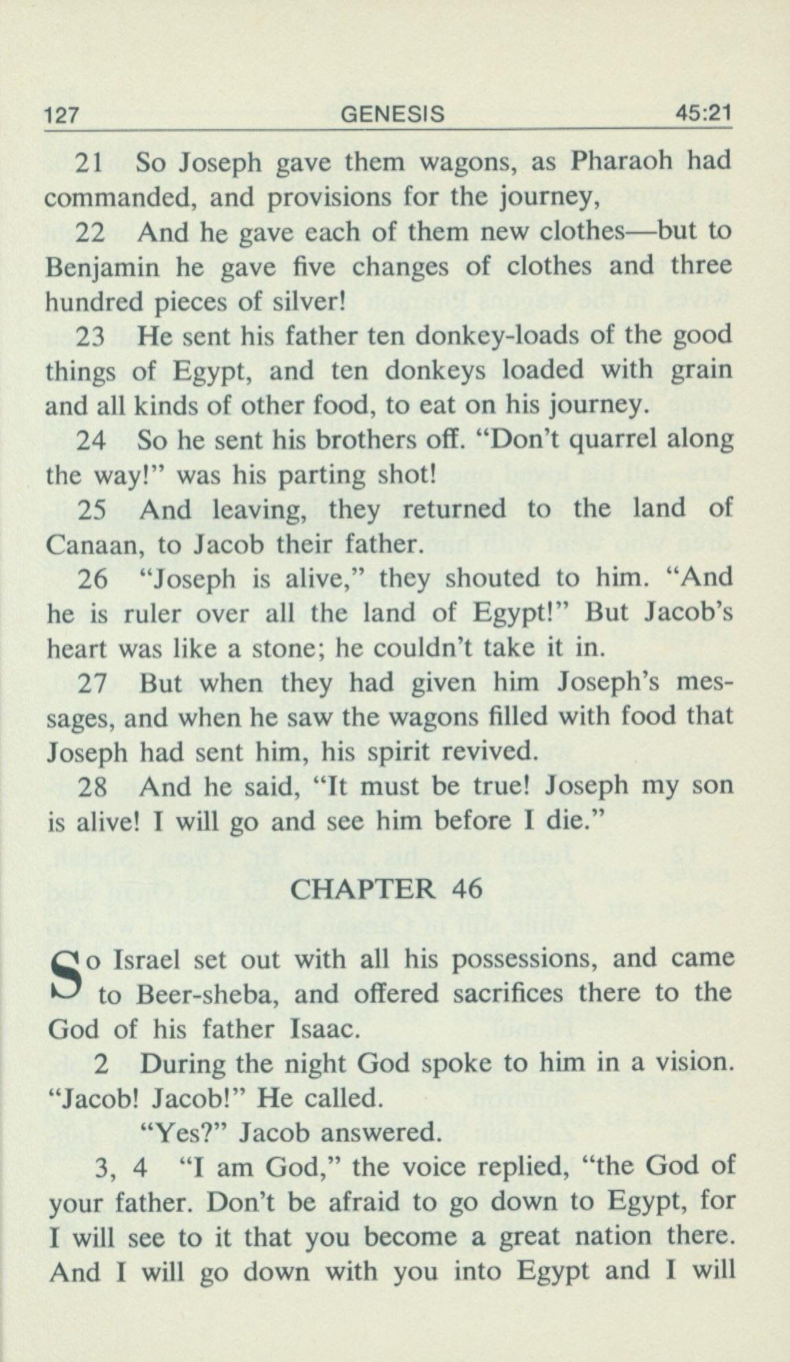 1969年Living Books of Moses 创世记 45 章 21 节到 46 章 4 节