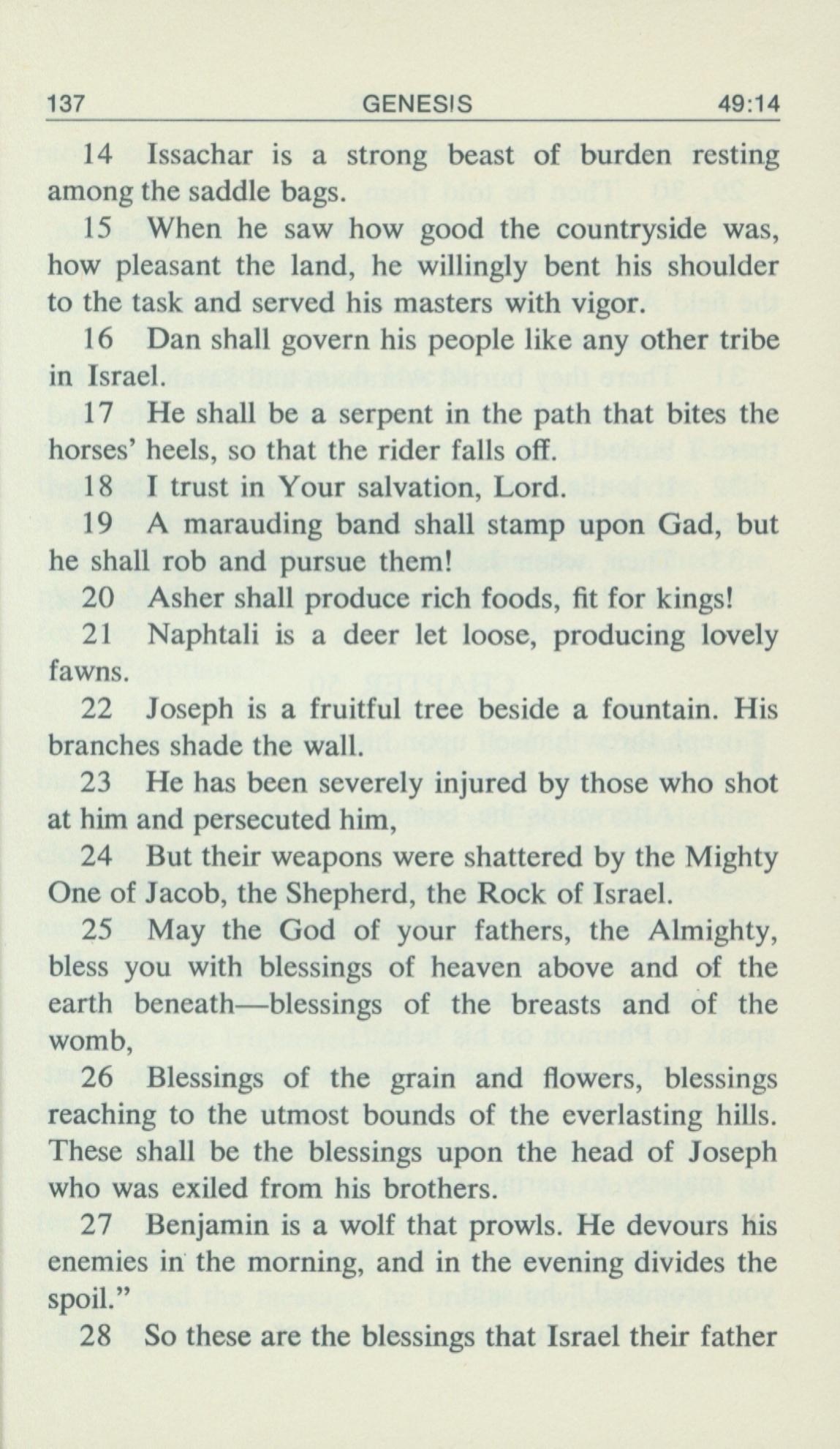 1969年Living Books of Moses 创世记 49 章 14 节到 49 章 28 节