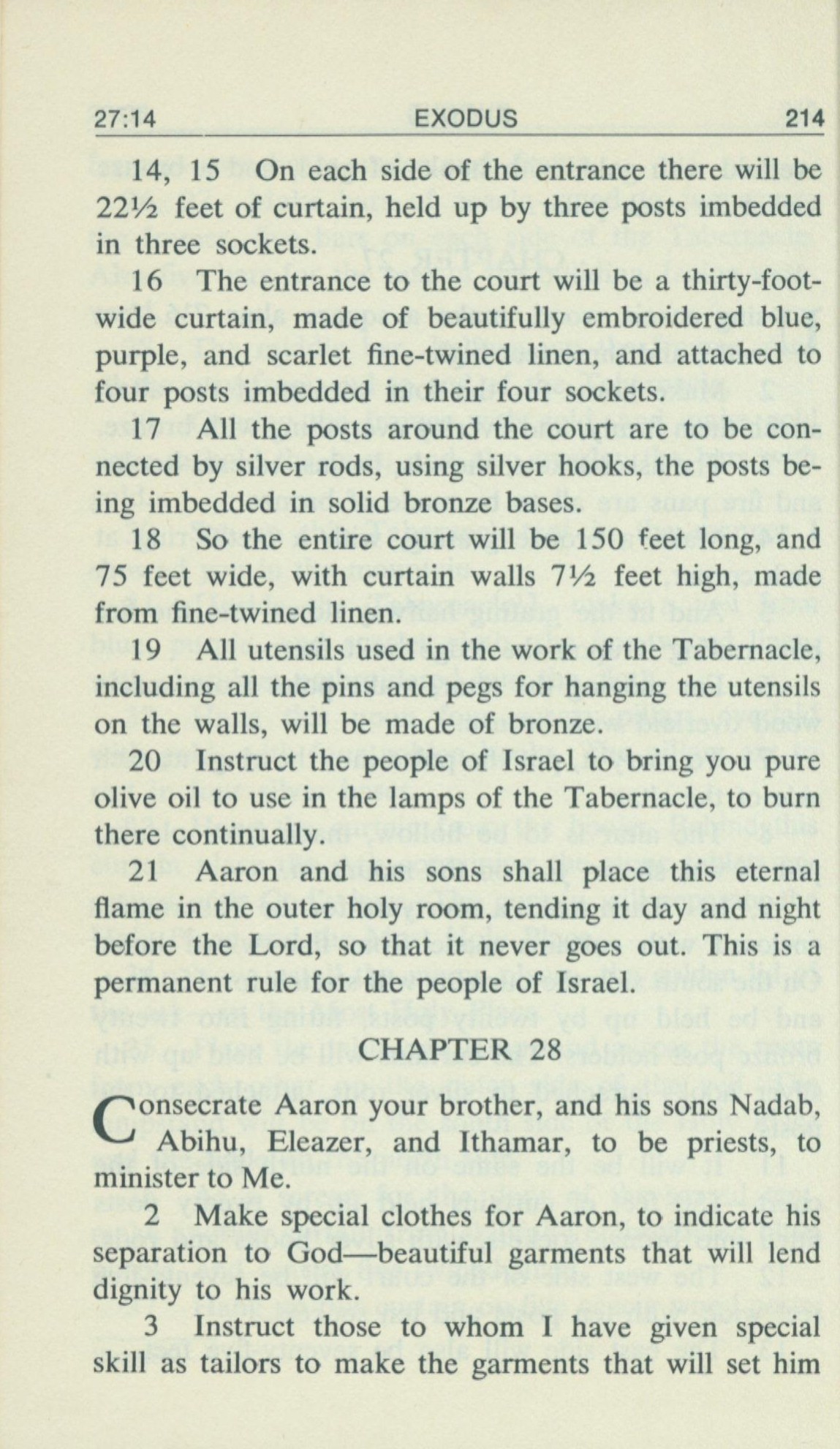 1969年Living Books of Moses 出埃及记 27 章 14 节到 28 章 3 节