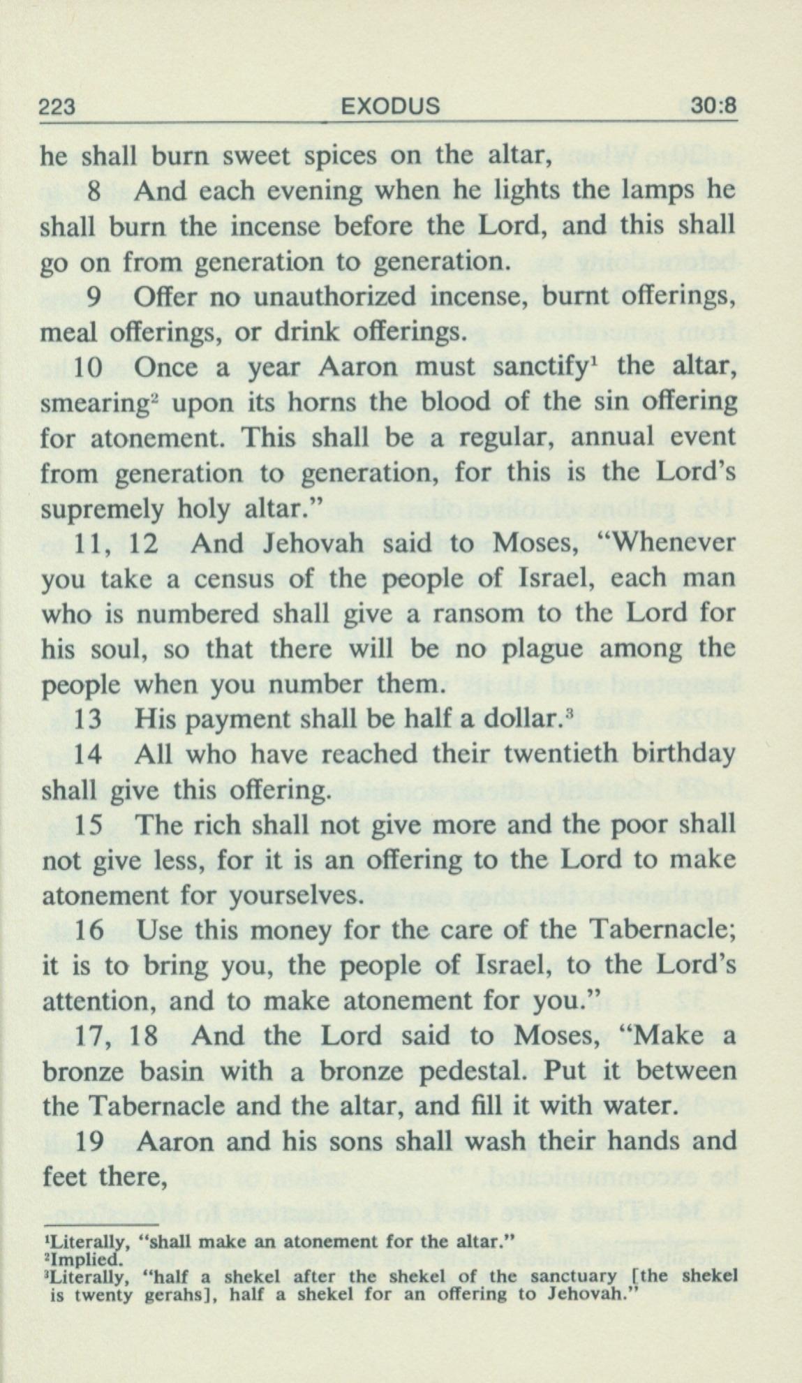 1969年Living Books of Moses 出埃及记 30 章 8 节到 30 章 19 节