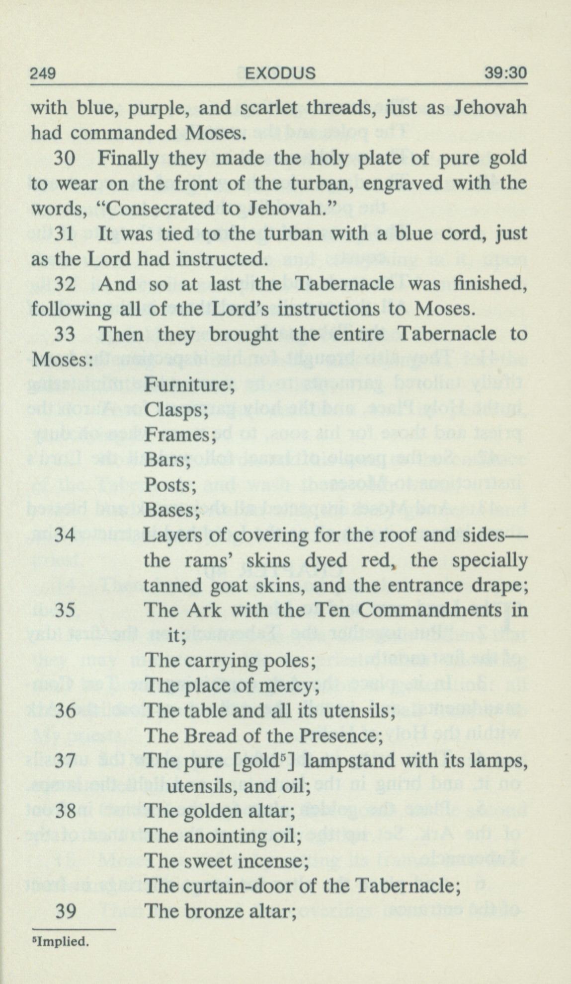 1969年Living Books of Moses 出埃及记 39 章 30 节到 39 章 39 节