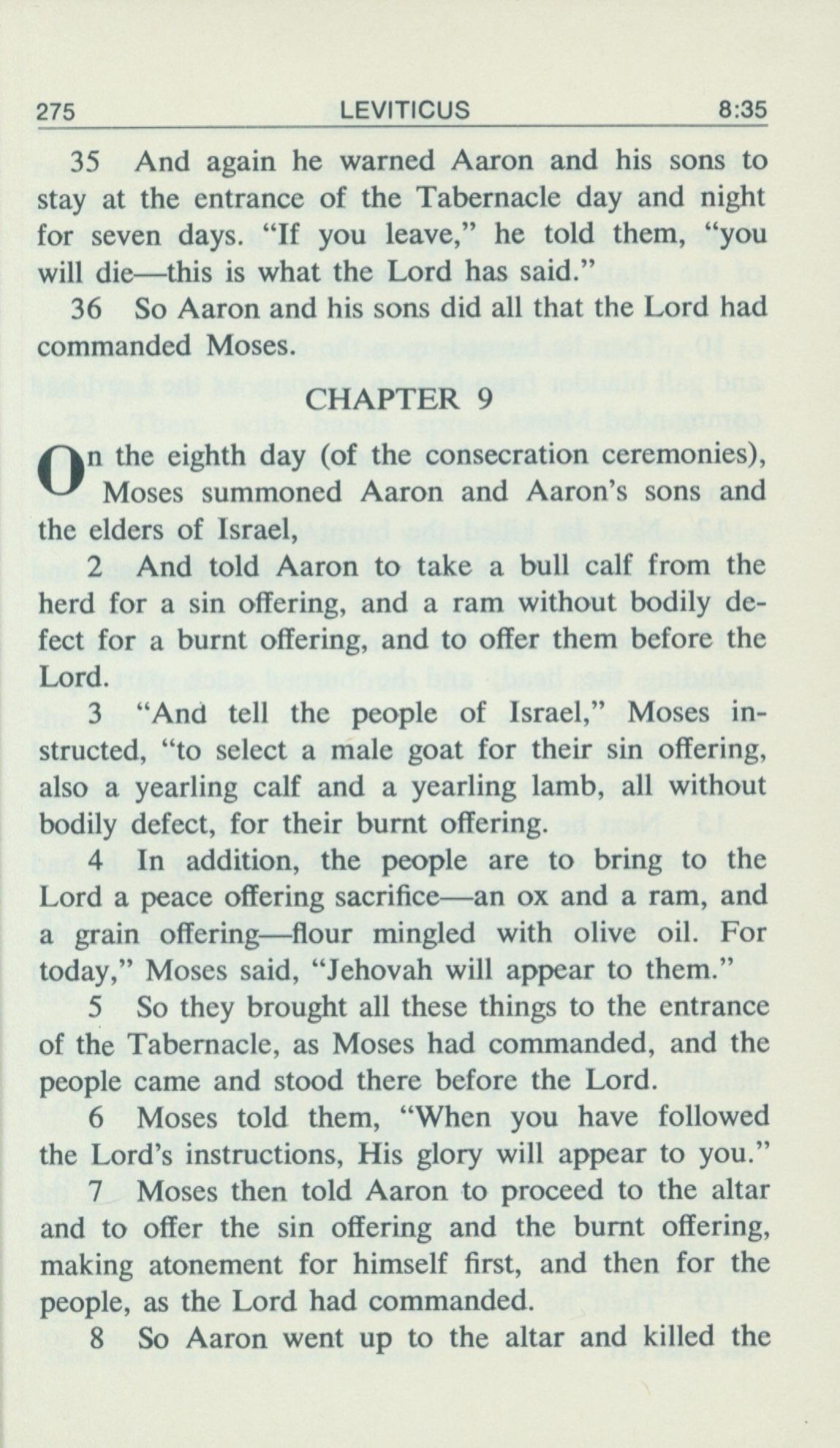 1969年Living Books of Moses 利未记 8 章 35 节到 9 章 8 节