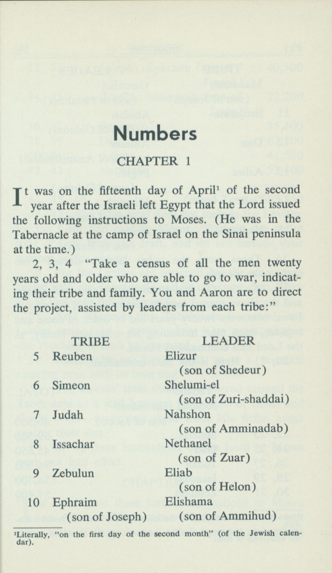 1969年Living Books of Moses 民数记 1 章 1 节到 1 章 10 节