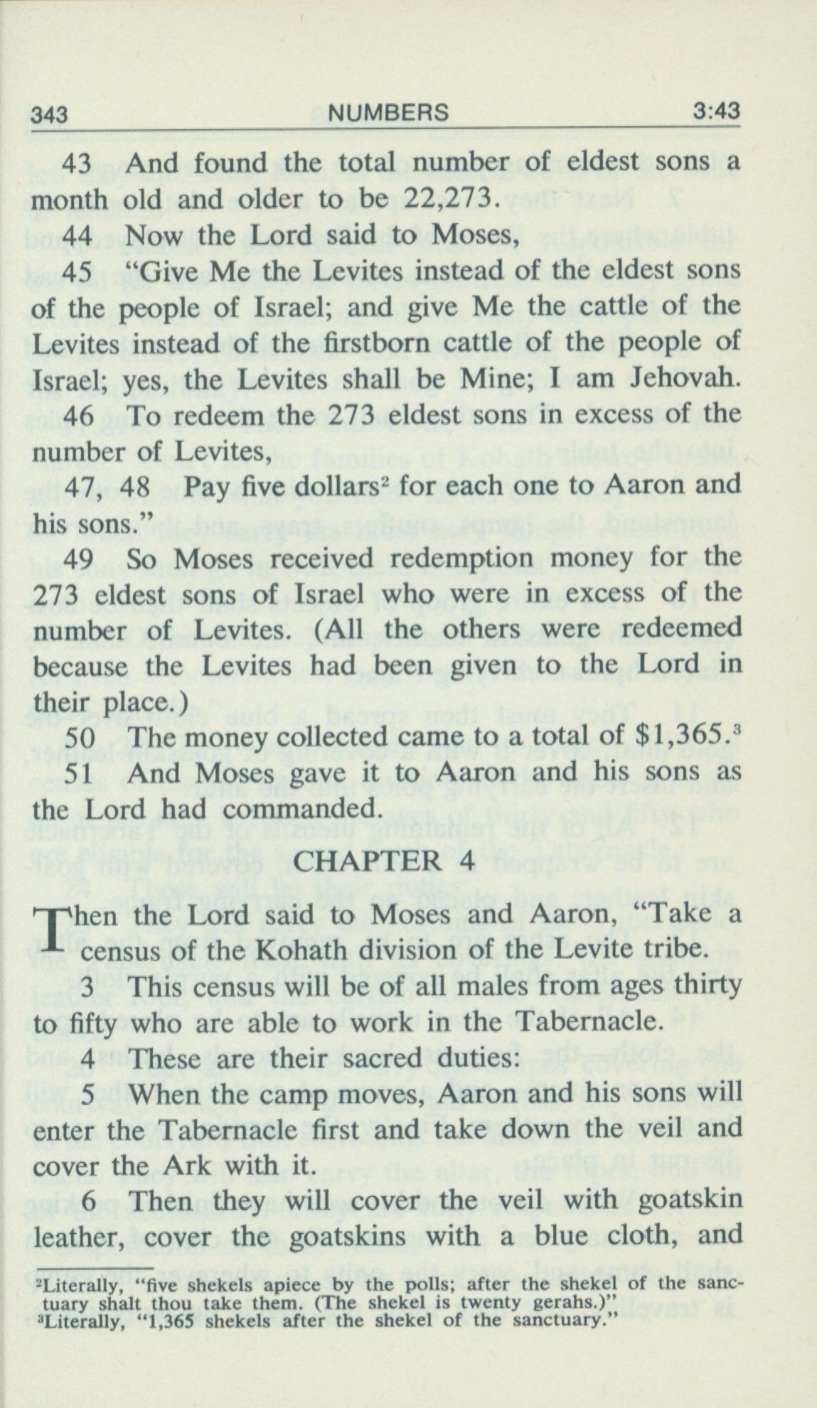 1969年Living Books of Moses 民数记 3 章 43 节到 4 章 6 节