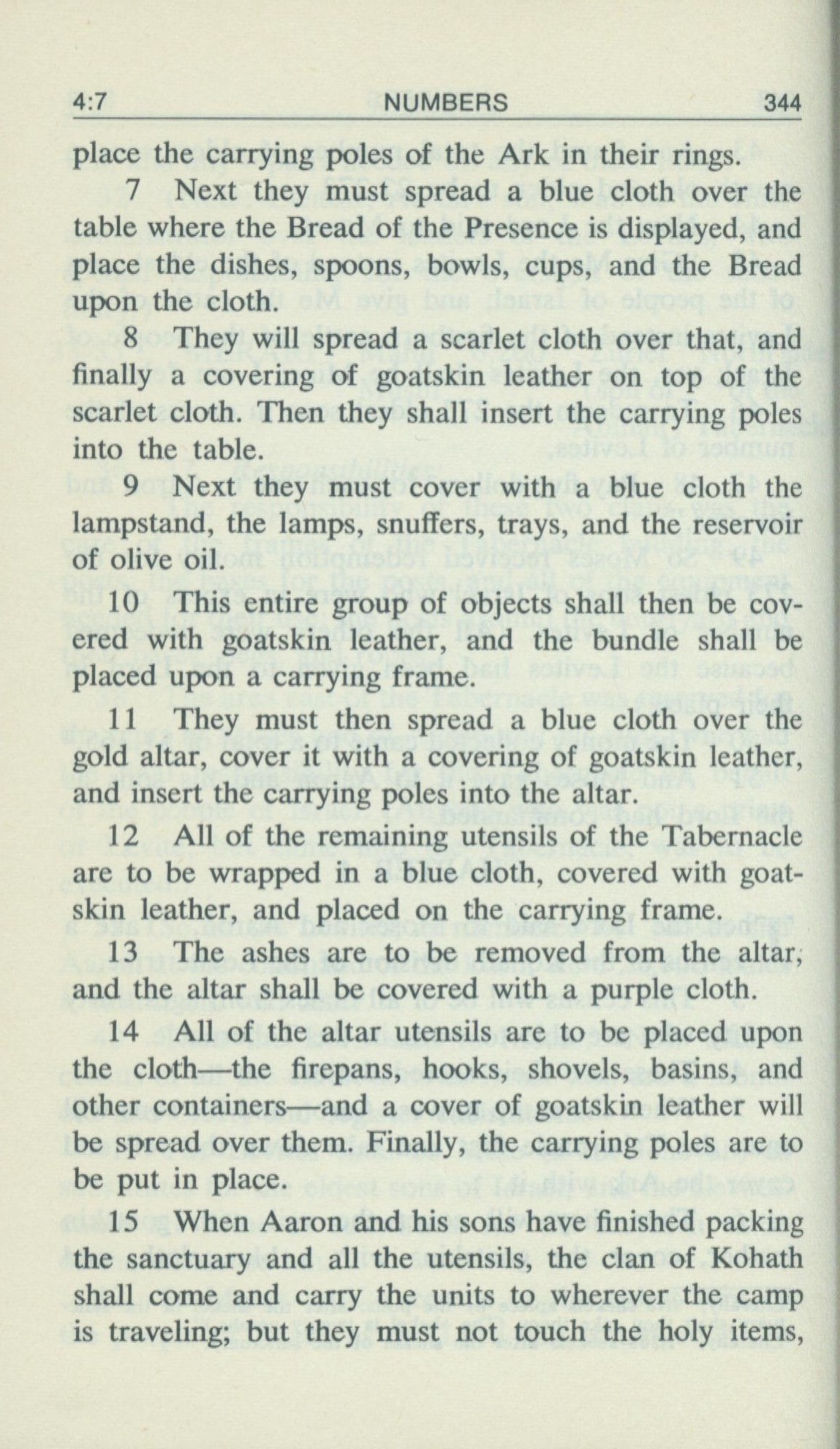 1969年Living Books of Moses 民数记 4 章 7 节到 4 章 15 节