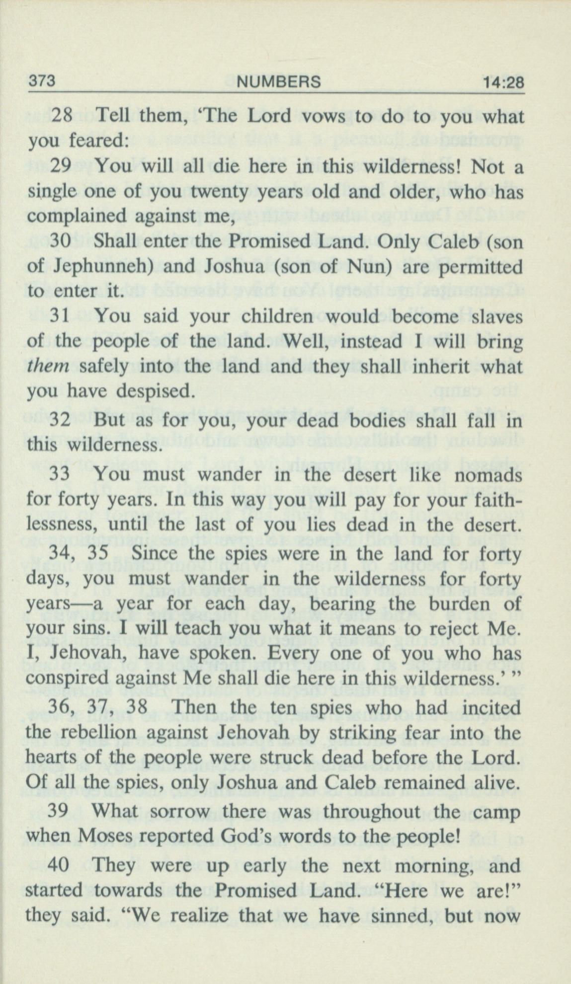 1969年Living Books of Moses 民数记 14 章 28 节到 14 章 40 节