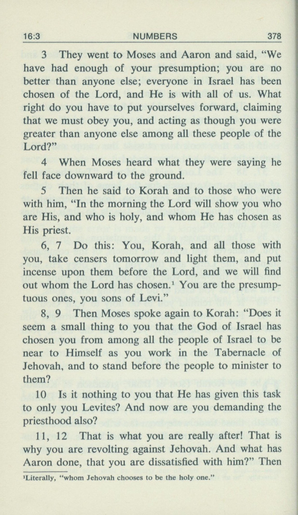 1969年Living Books of Moses 民数记 16 章 3 节到 16 章 12 节