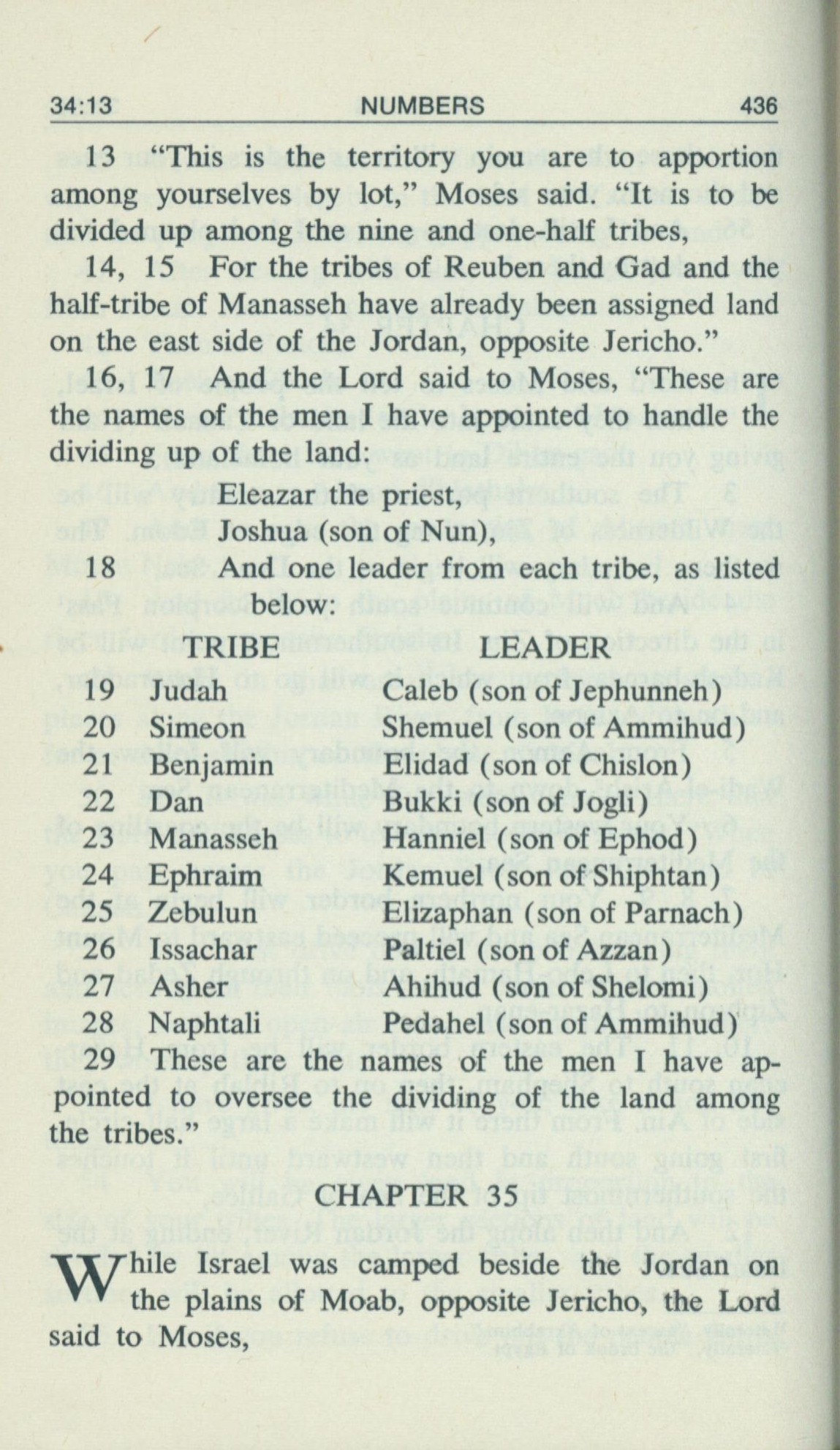 1969年Living Books of Moses 民数记 34 章 13 节到 35 章 1 节