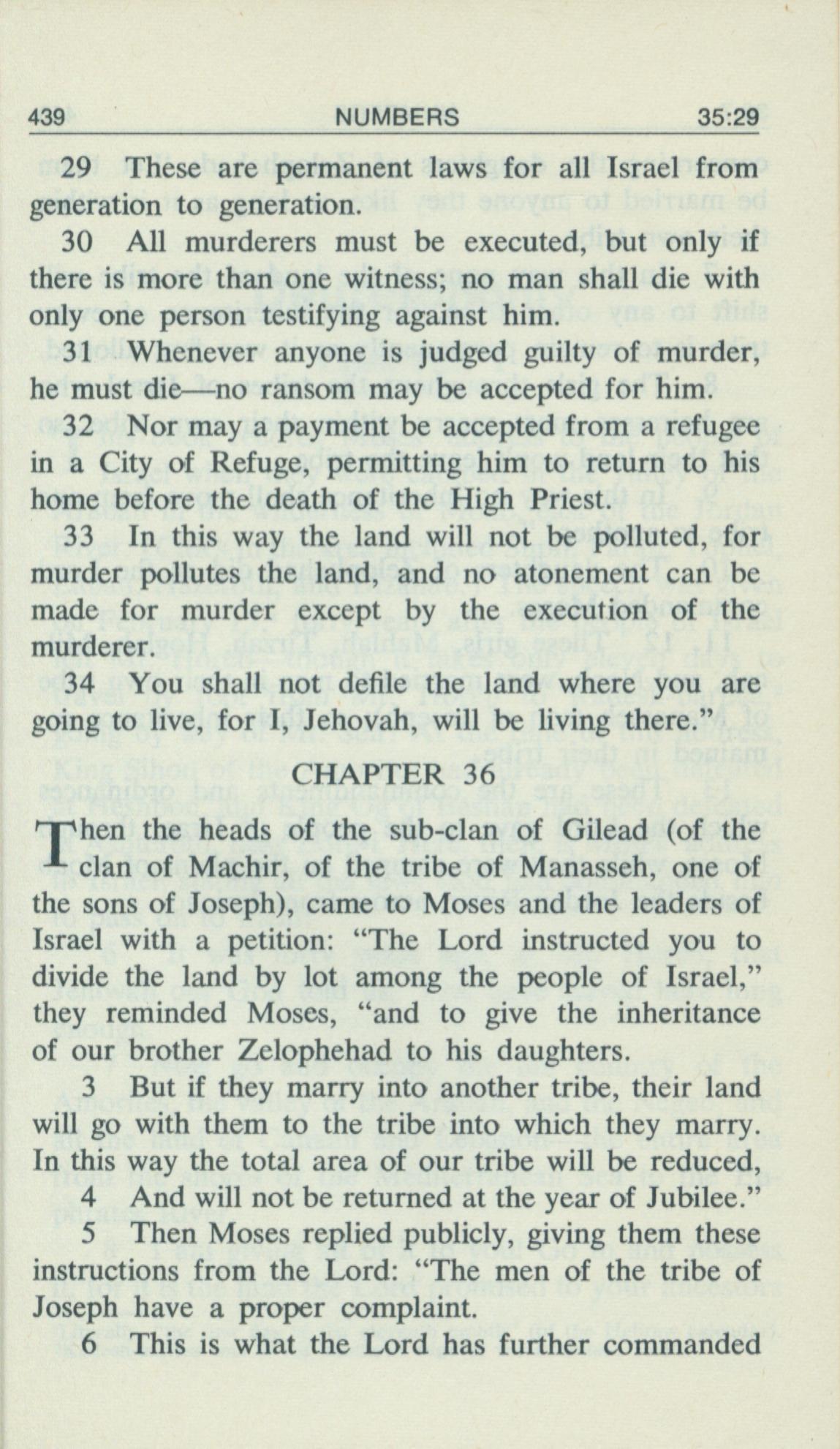 1969年Living Books of Moses 民数记 35 章 29 节到 36 章 6 节