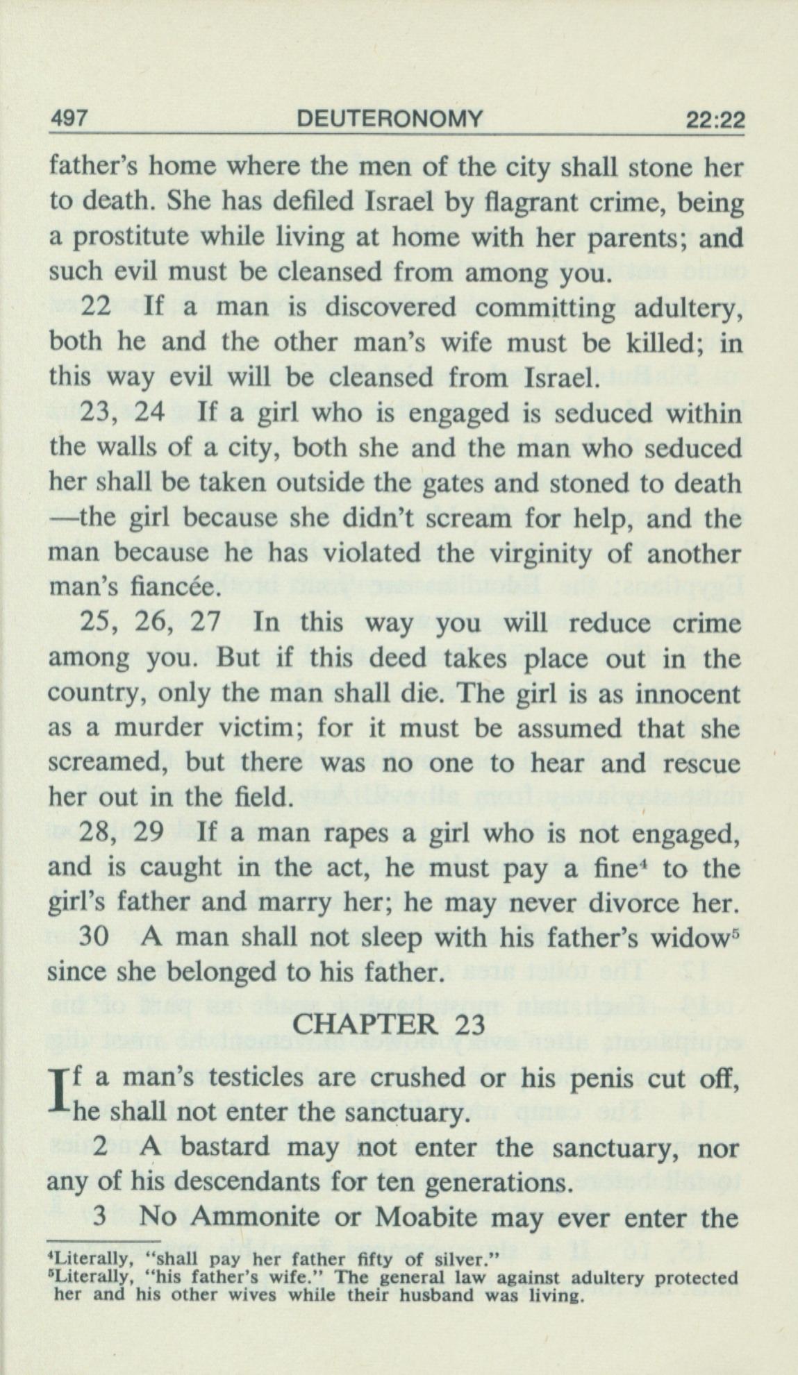 1969年Living Books of Moses 申命记 22 章 21 节到 23 章 3 节