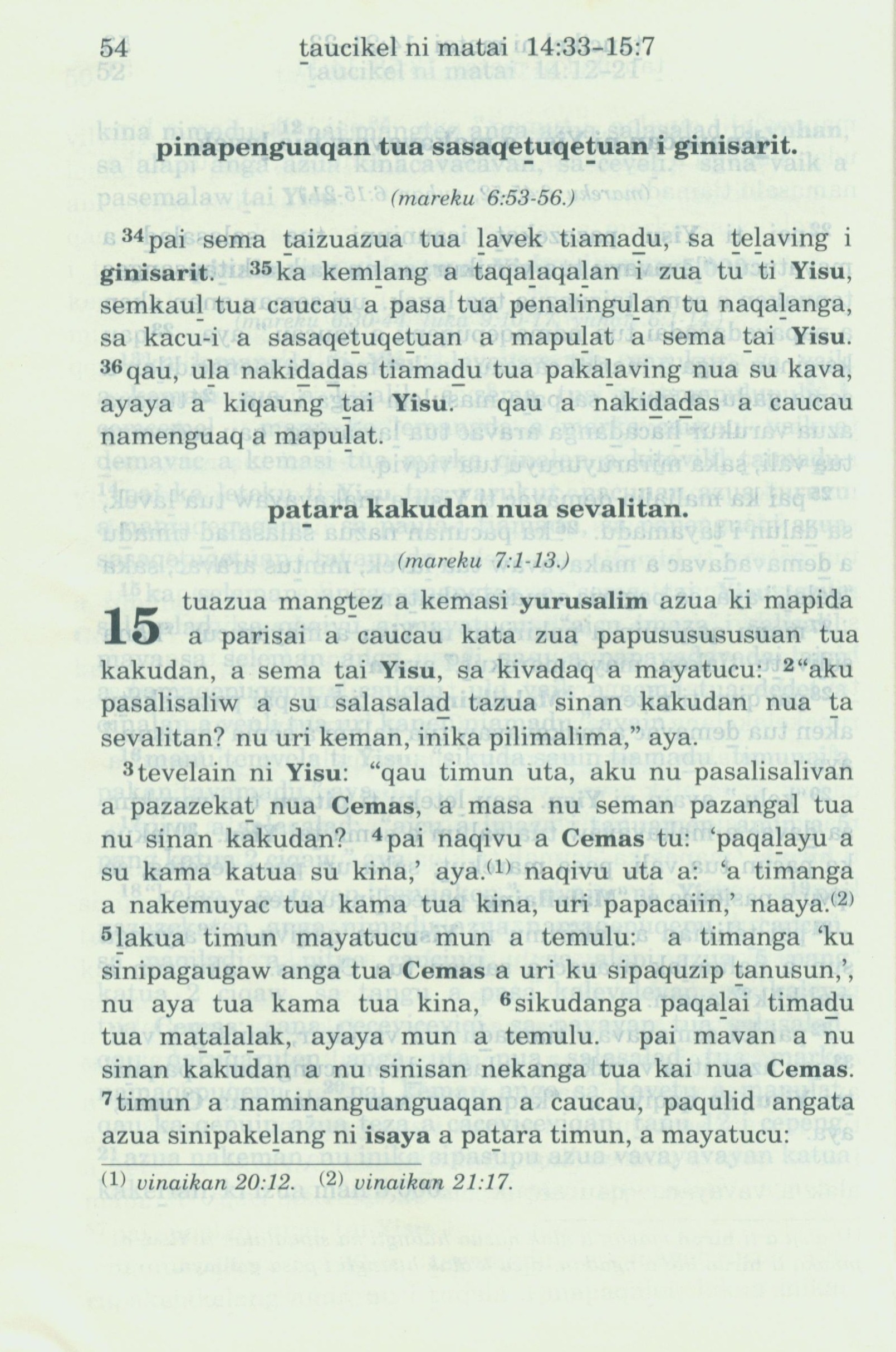 1993年新旧约全书 马太福音 14 章 34 节到 15 章 7 节