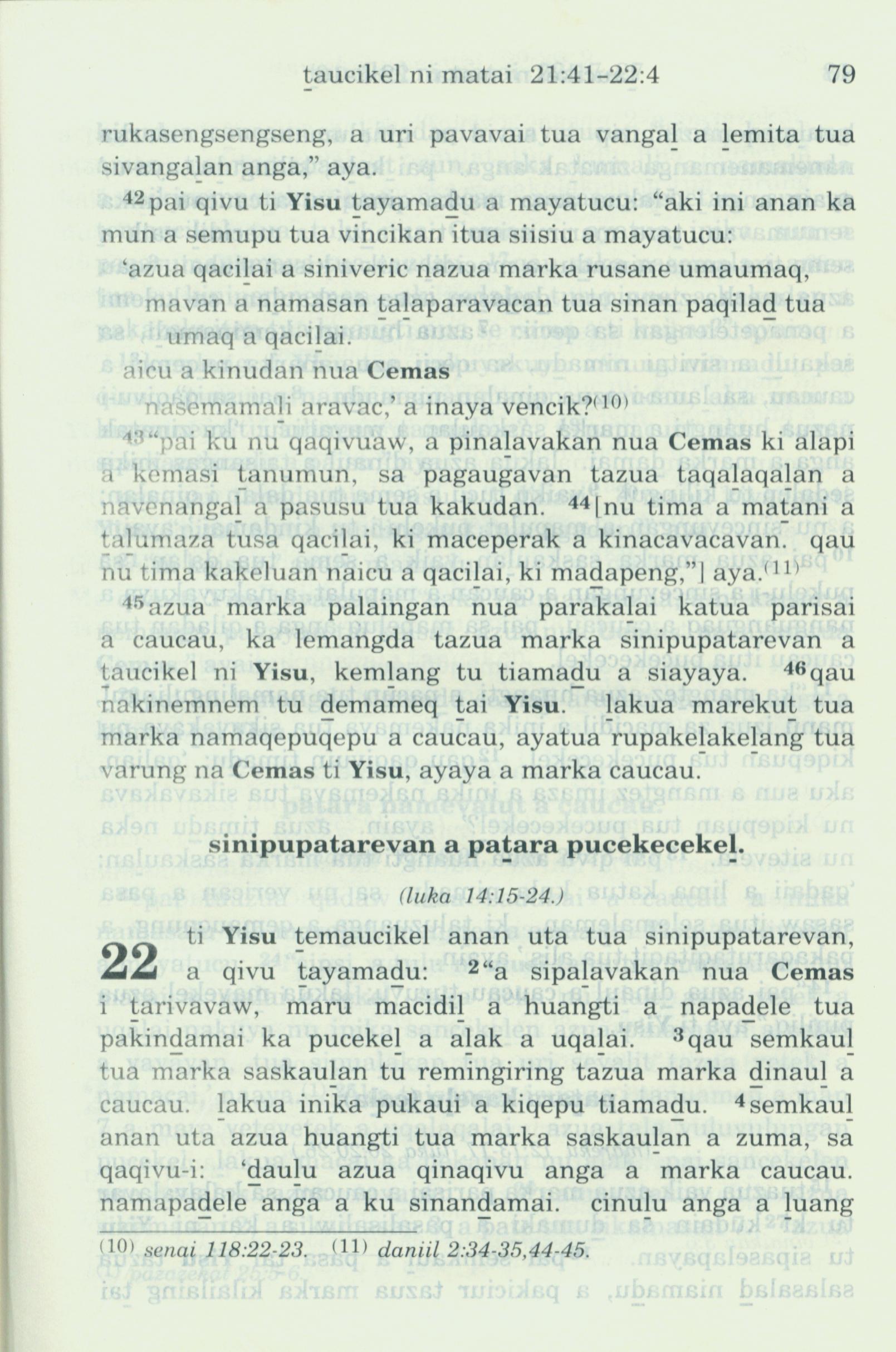 1993年新旧约全书 马太福音 21 章 42 节到 22 章 4 节