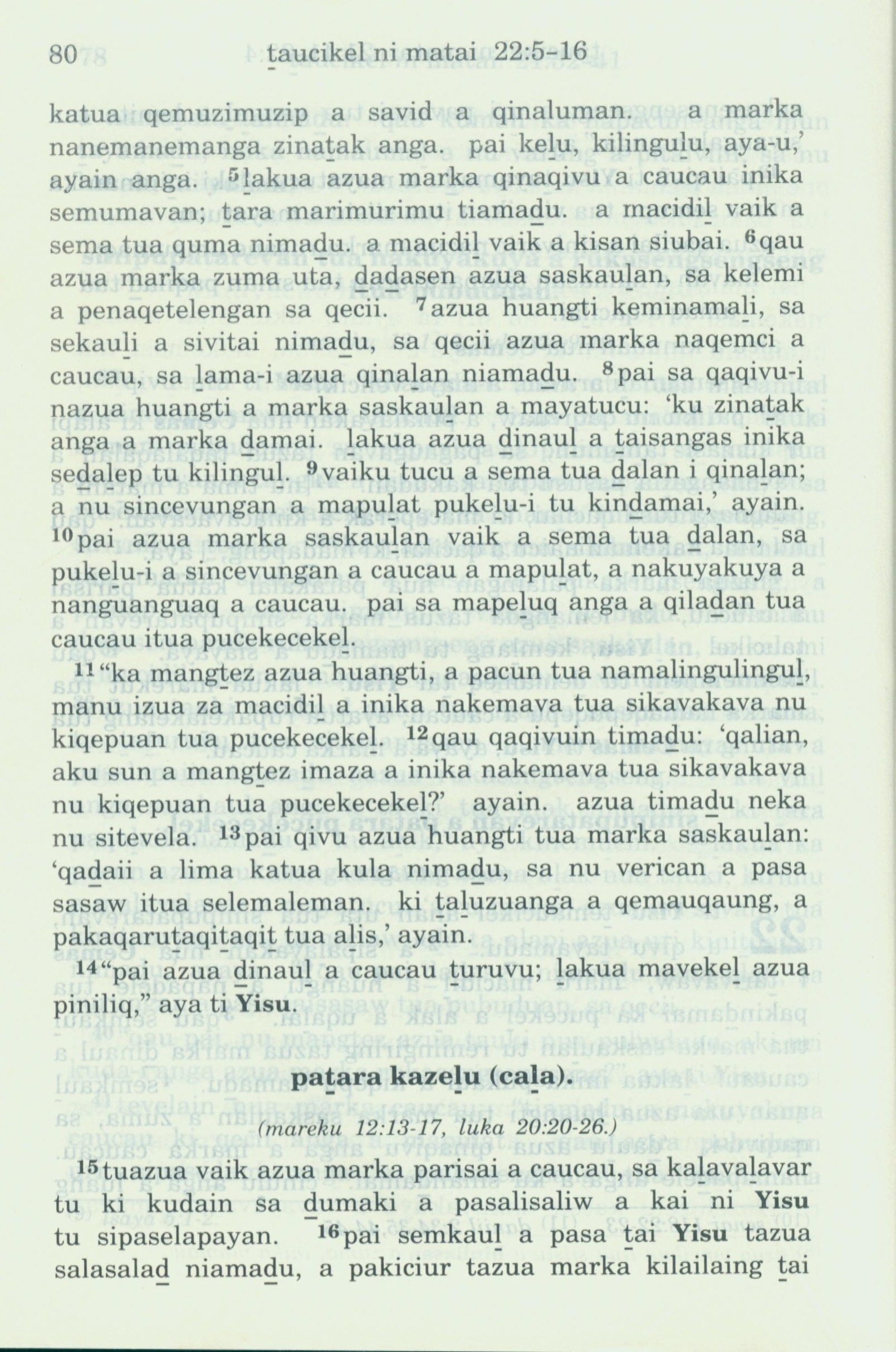 1993年新旧约全书 马太福音 22 章 5 节到 22 章 15 节