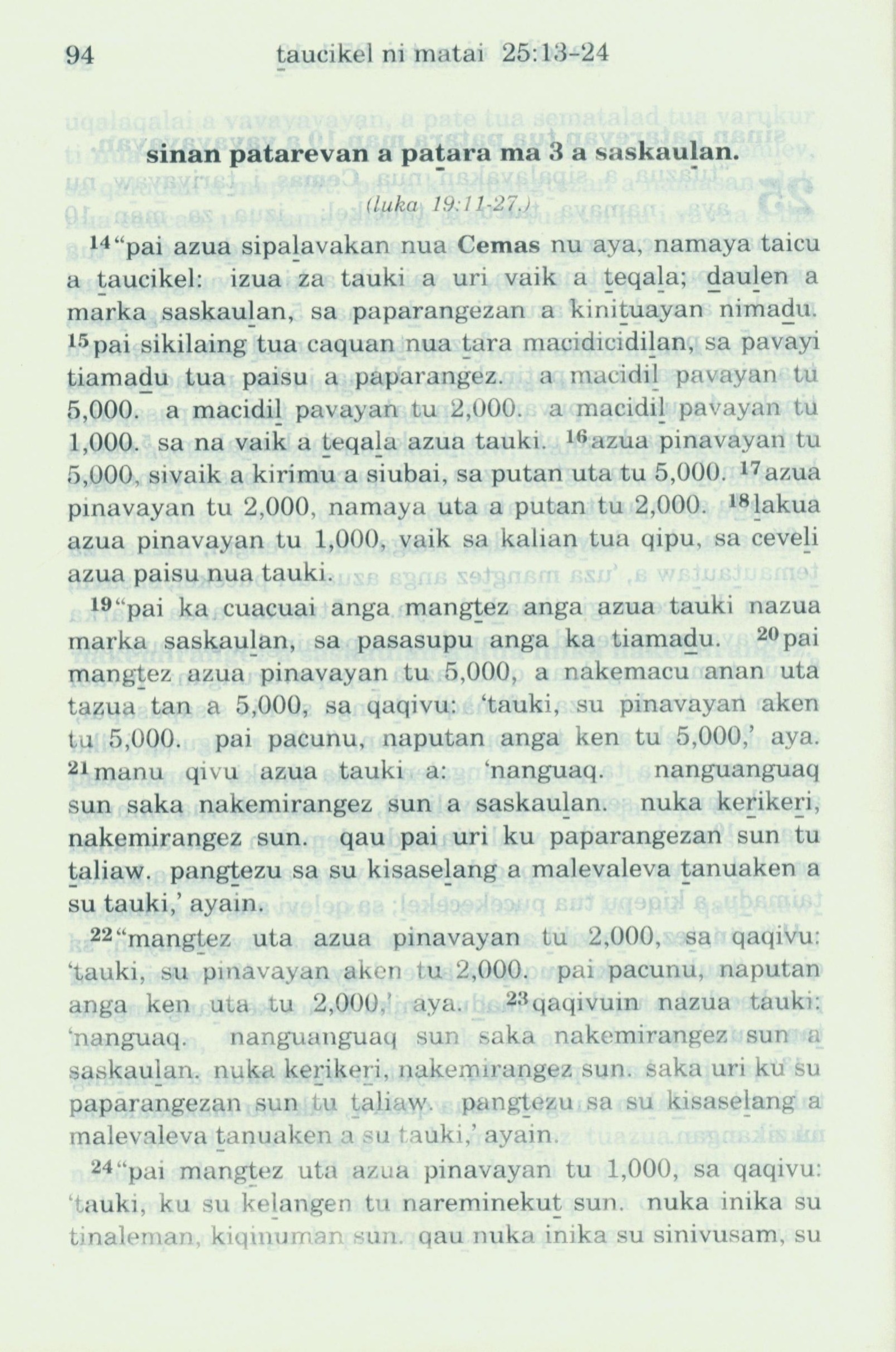 1993年新旧约全书 马太福音 25 章 14 节到 25 章 24 节